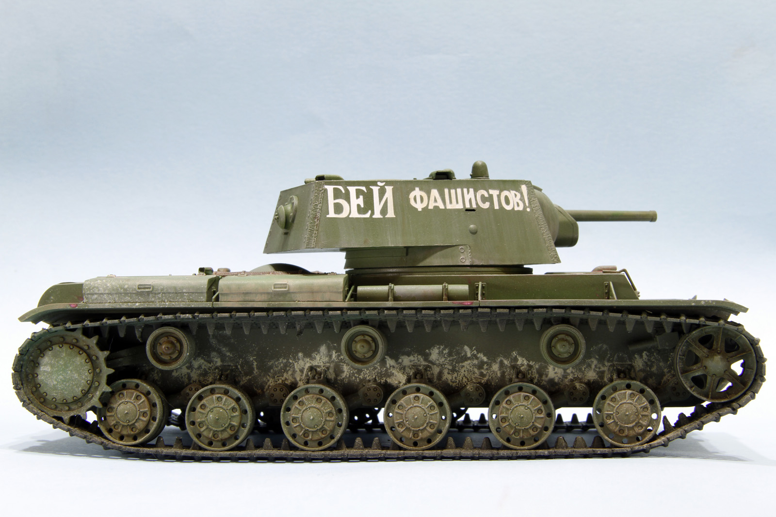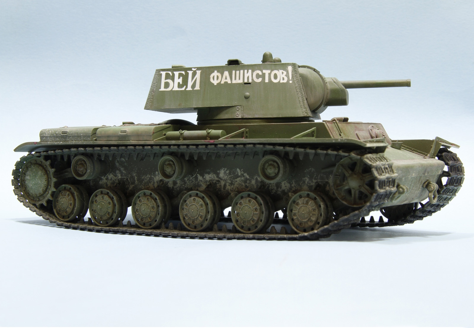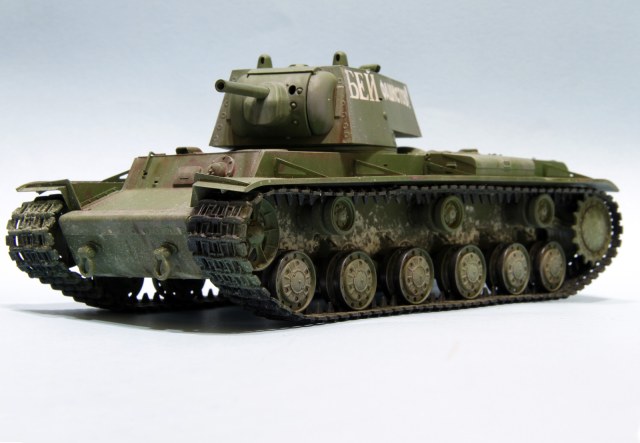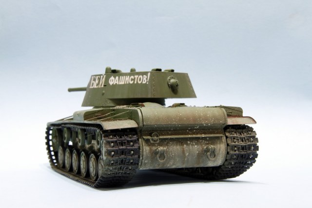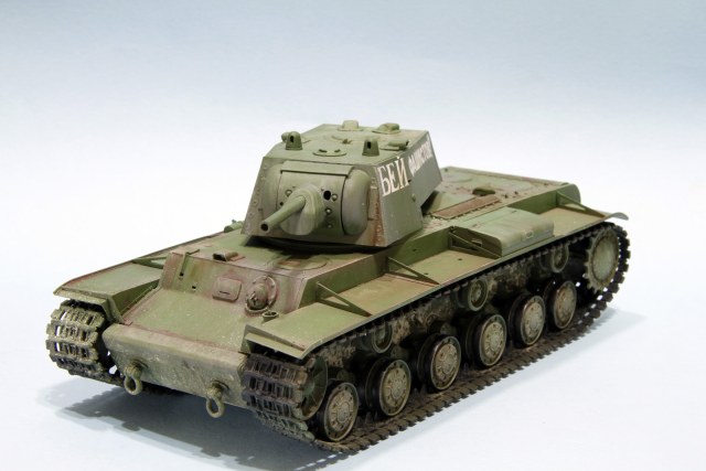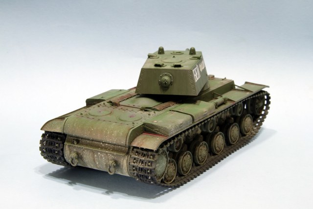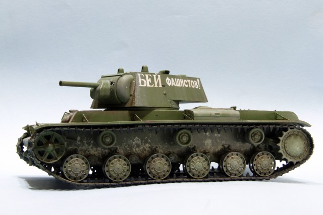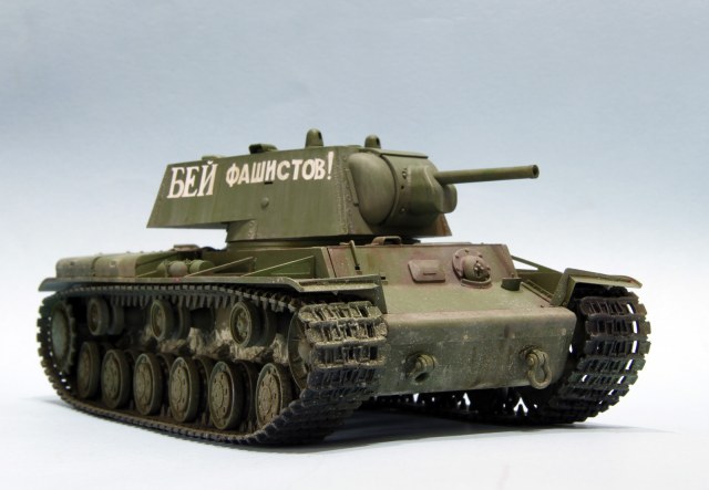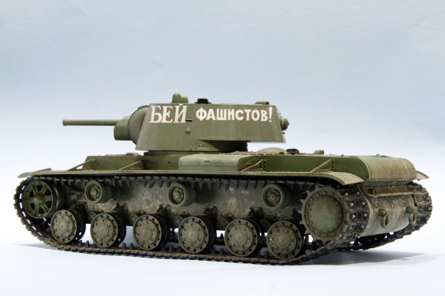 КВ-1 образца 1941 год от трампетера. Гусеницы будут заменены на пластик, винил просто для примерки, не хватает фары, сигнала и пулеметов, так же будет еще добавлена часть деталей.