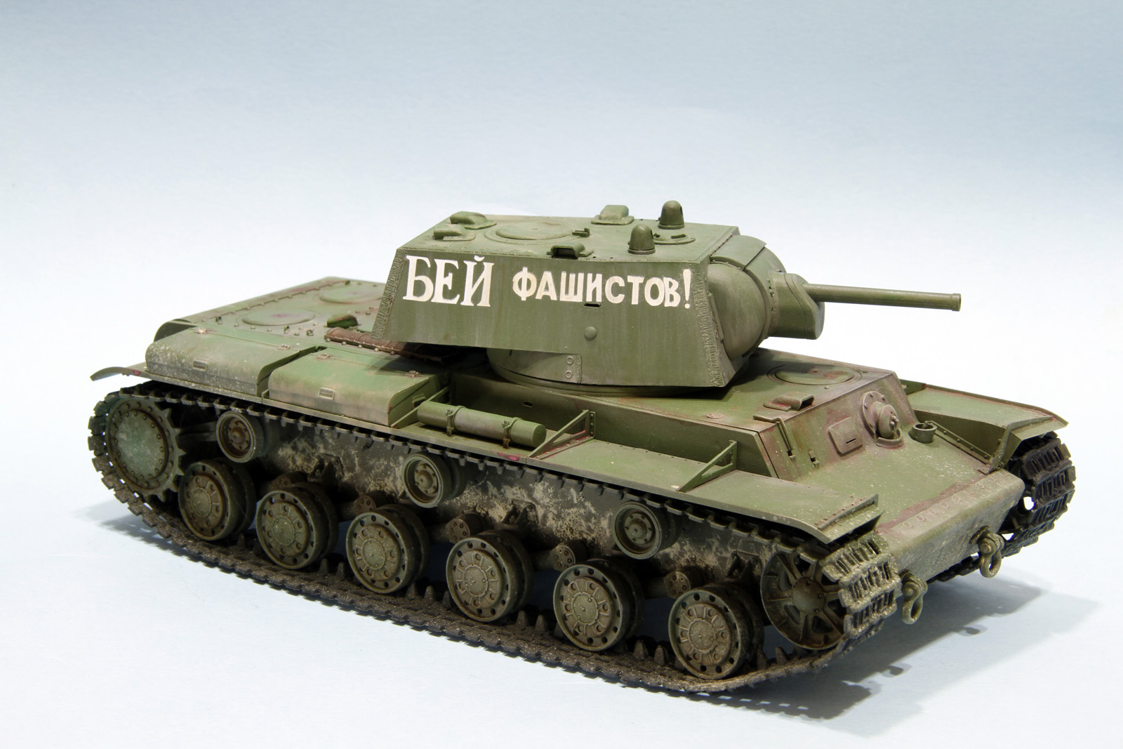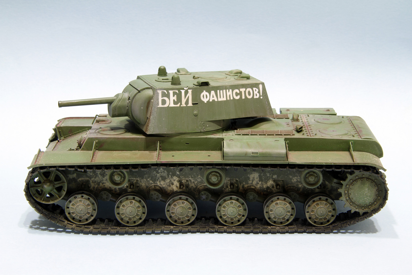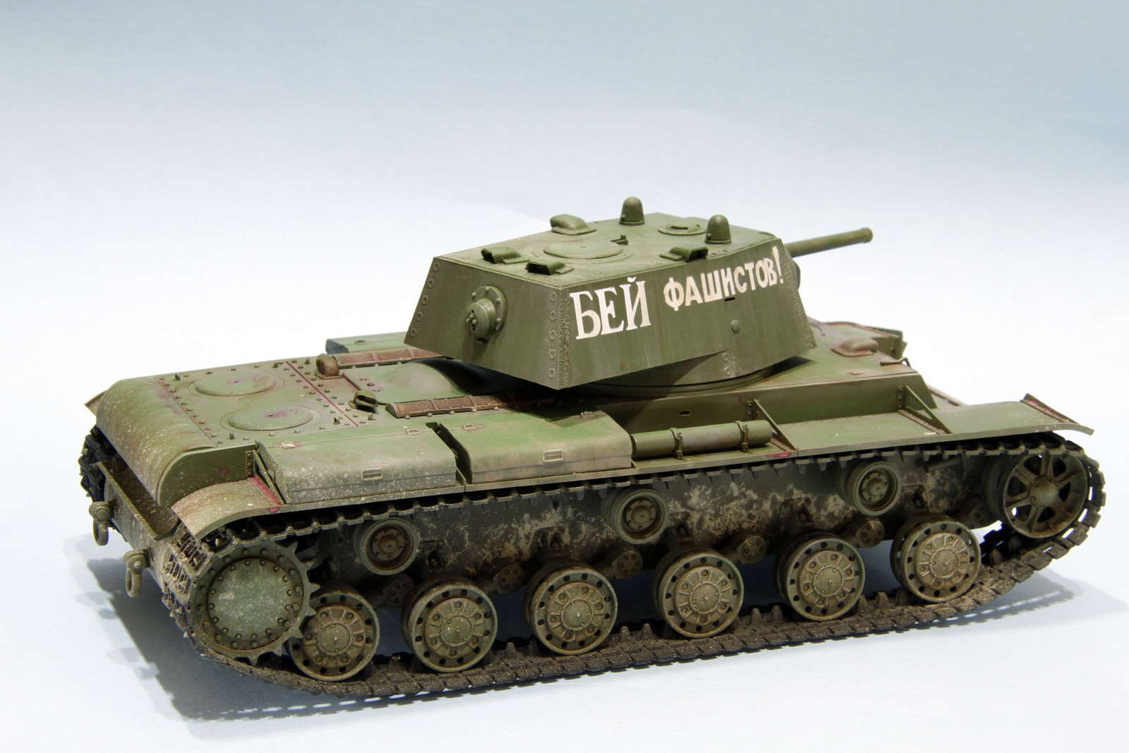 КВ-1 образца 1941 год от трампетера. Гусеницы будут заменены на пластик, винил просто для примерки, не хватает фары, сигнала и пулеметов, так же будет еще добавлена часть деталей.