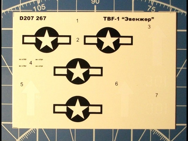 - Отложите декаль в сторону, тем более, что она вообще на позднюю модификацию - TBM-3. Поищите декаль Frog (они на британцев), или прикупите, что посвежее с британскими кругами, если не жалко на эту модель;