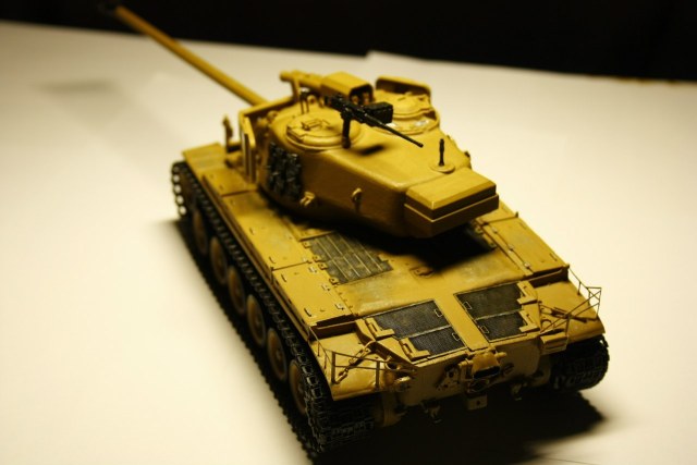я начинающий, так что не знаю что описывать...) красить было тяжело, пытался наносить тени кистью, что многие спокойно делают аэрографом... долго смеживал цвета, что-бы полечить оттенок, на один или два тона темнее... домаю что получилось, но при детальном рассмотрении можно увидеть много недостатков... как например потерянные детали - пружины, которые крепились между экранами и корпусом... а так я старался... это моя последняя работа на данный момент, так что считайте - лучшая...) позже по нахожу и по выкидываю более ранние модели.