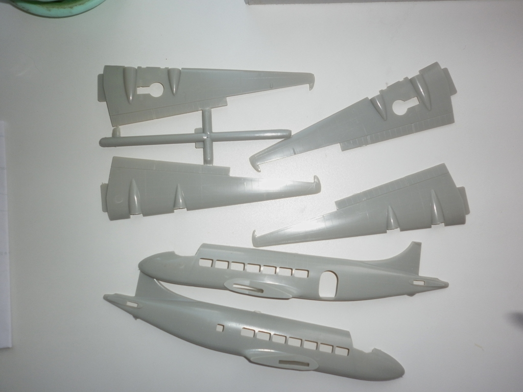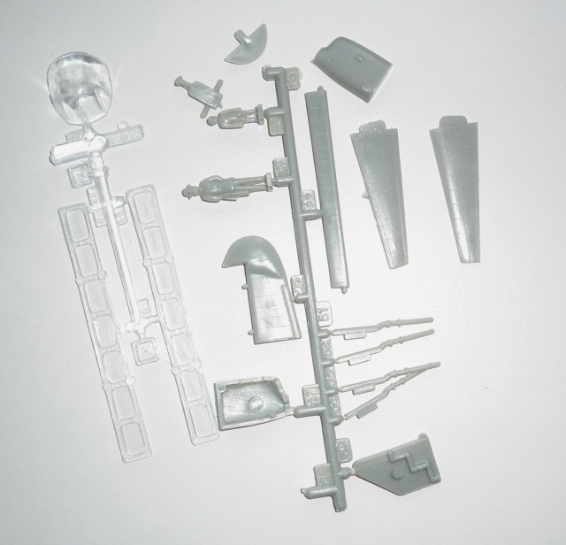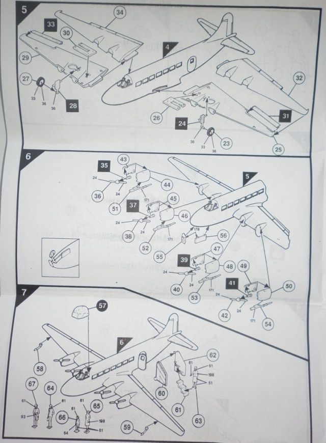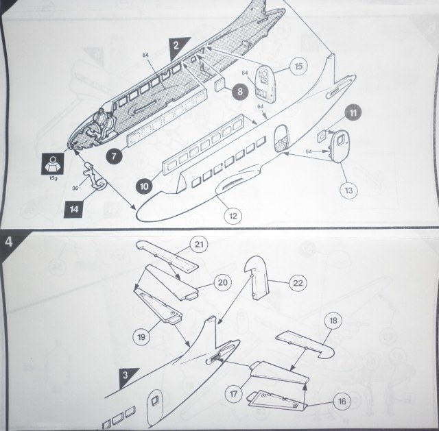 Детали из мягкого серого пластика на литнике типа "снежинка" , посему немало их отваливается от литника. Вся модель в стиле тех лет покрыта очень мелкой клёпкой. Инструкция понятная и простая. Вариант окраски один - от "Джерси аир."