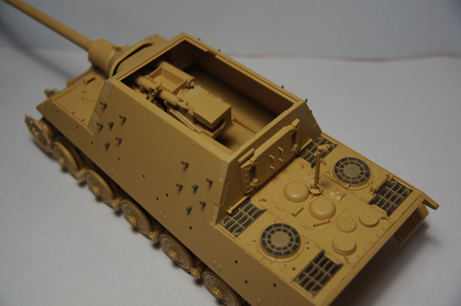 Ну в общем неплохо,понравилось. Но можно было его запылить хотя бы,лучше смотрелось бы. А гусеницы покрашены? Такое ощущение,что не покрашены. Слишком чистая модель ИМХО
