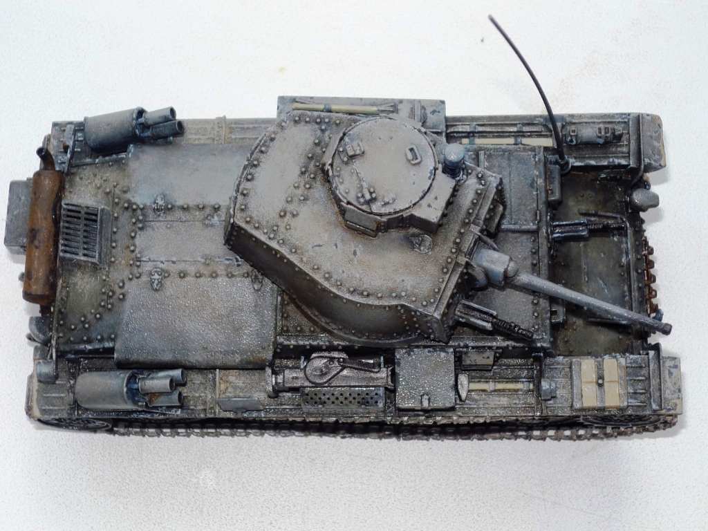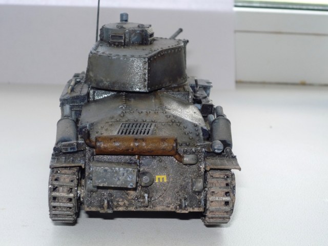 Однозначно лучше чем единичка, но с траками беда: они у вас ни на звездочку ни на ленивец не налезли. Ржавчина на зап.траках и глушителе не удалась. Смывка и сколы понравились. Удачи.