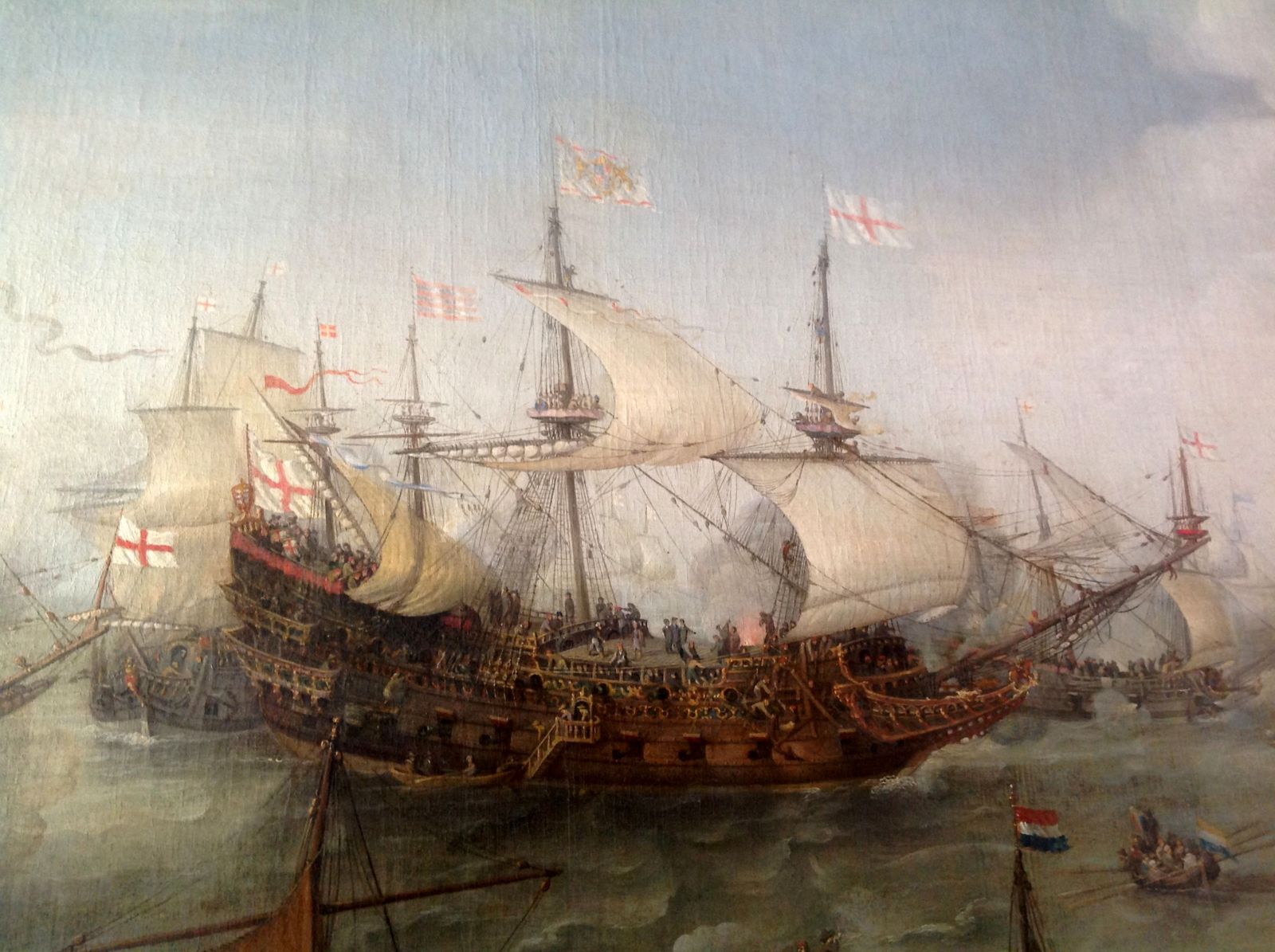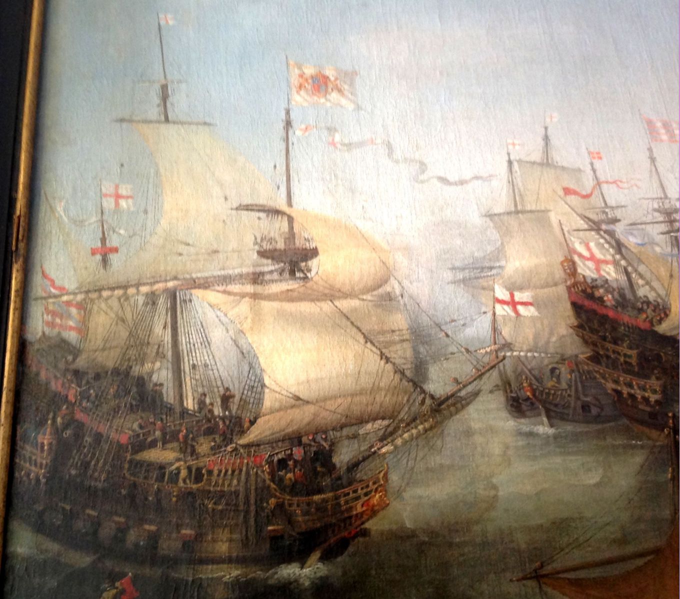 Глядя на подобные картины меня начинает мучить совесть - корпус недостроенной "Батисты" требует рангоута и такелажа. Ну там матчасть еще учить и учить... А еще пушки надо токарить... И тем не менее очень люблю эти неповоротливые резные сундуки, густо покрытые позолотой. Снимаю шляпу перед красавцами линейными кораблями 17 столетия.