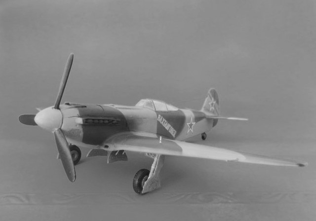 Як-9У с двигателем ВК-107А из состава 29 гвардейского Волховского истребительного авиаполка 7 воздушной армии Карельского фронта, зима 1944-45 гг. Одна из четырех машин этого типа, построенных на средства коллектива театра им. Евгения Вахтангова и переданных летчикам: Герою Советского Союза Федору Чубукову (34 личных и 5 групповых побед), О. Архирееву, П. Емельянову, Б. Логинову.