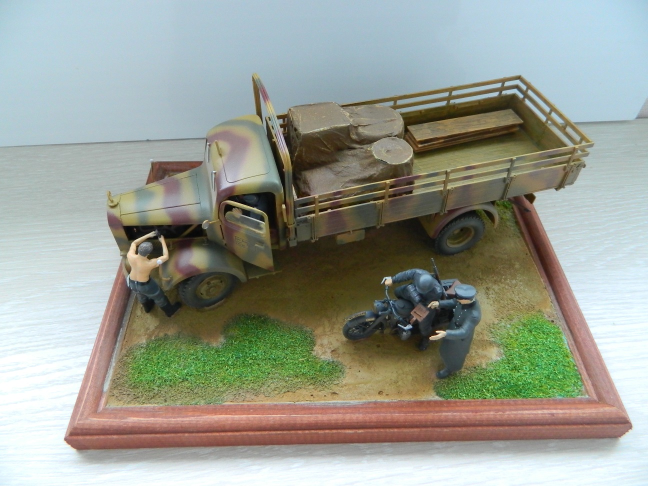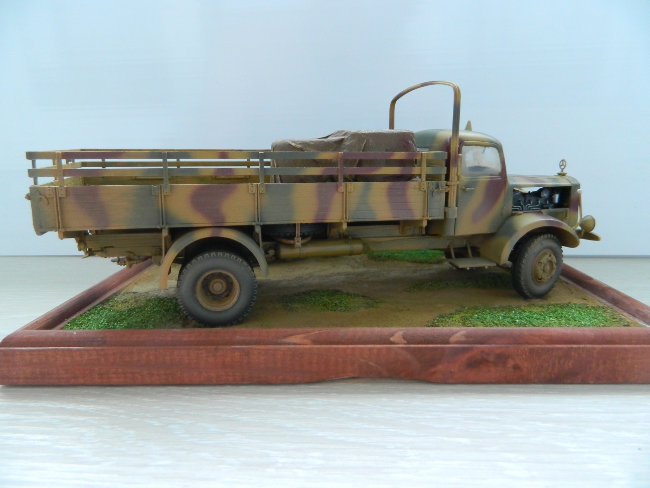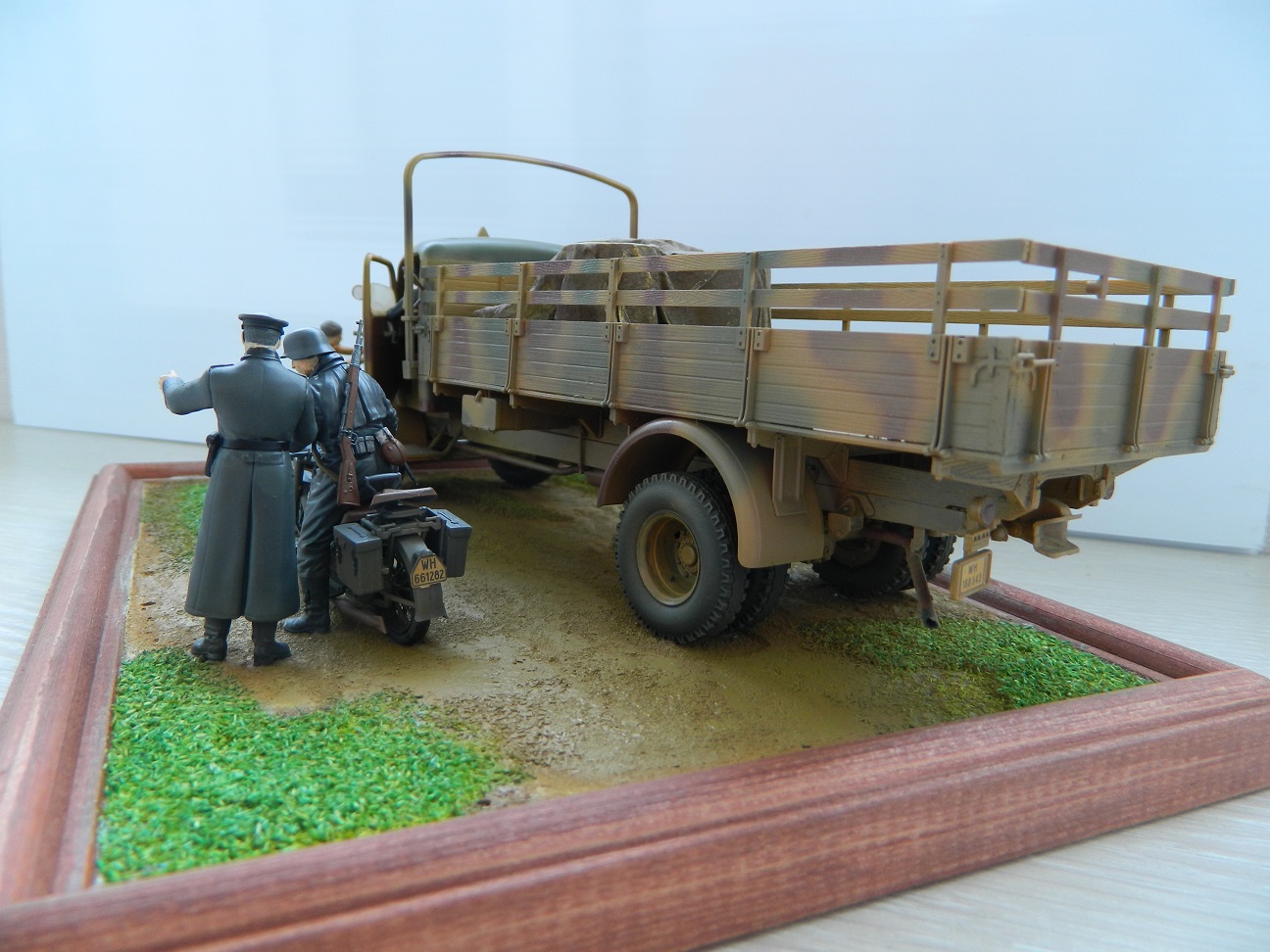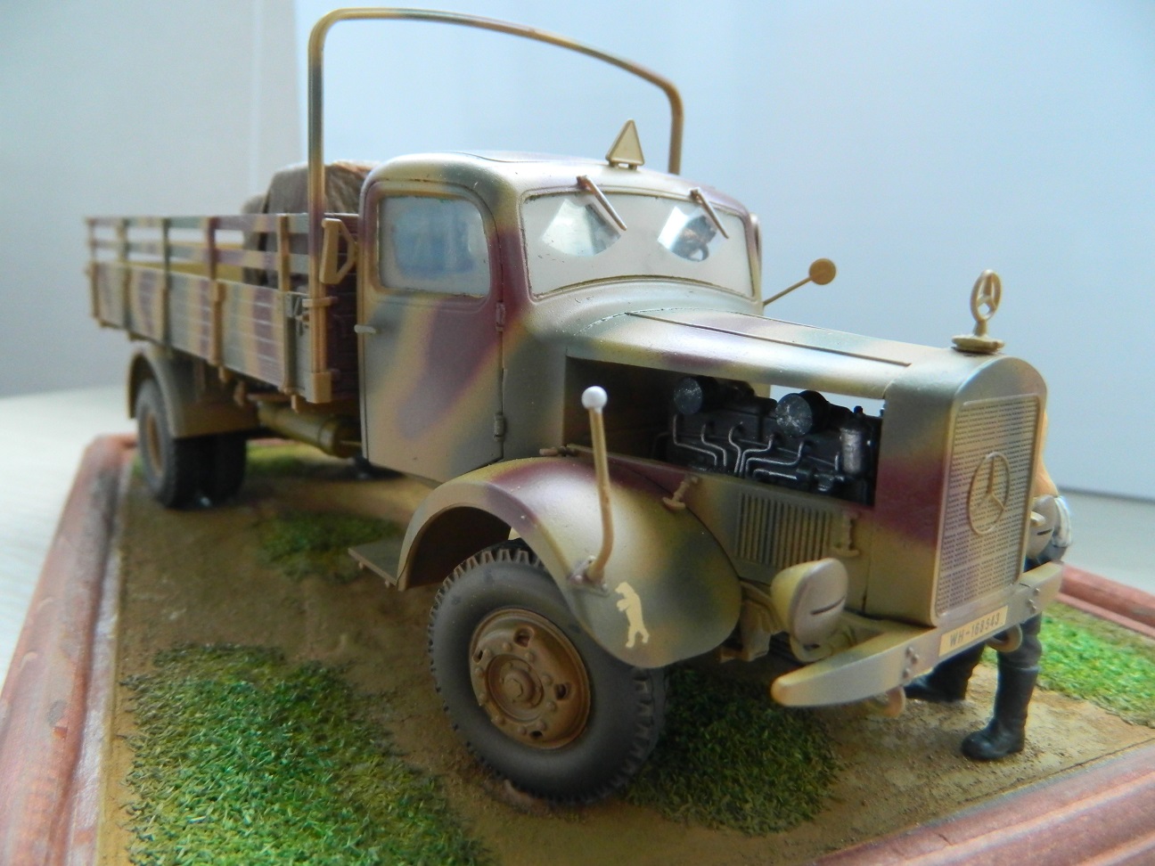 Доброго времени суток Уважаемые. Представляю небольшую диорамку из двух наборов от Звезды. Сборка из коробки с небольшими дополнениями, окраска аэрографом (старым, камуфляж на мерседесе прямо скажу не удался), акрил Mr.Hobby. В галерею не выставляю, пусть в личных валяется. Приятного просмотра.