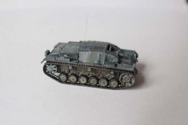 Окрас: акрил Тамия, Акан, Масло МИГ, Тамиевский пигмент- пудренница, по граням прошёлся простым карандашом, сколы также делал простым карандашом.