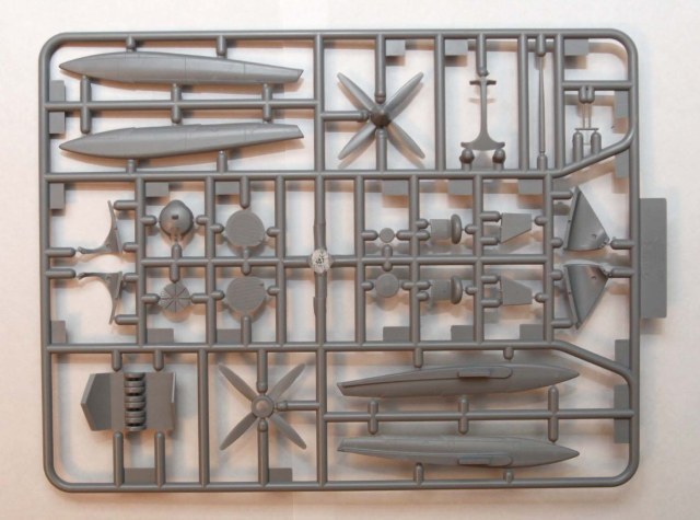 Содержимое состоит из 4-х литников серого пластика с деталями, прозрачный литник с остеклением кабины( странно что не выплавили "стекла" для иллюминаторов, мелочь, а неприятно:)), декальки на два варианта и инструкция... чуть не забыл... Клей!