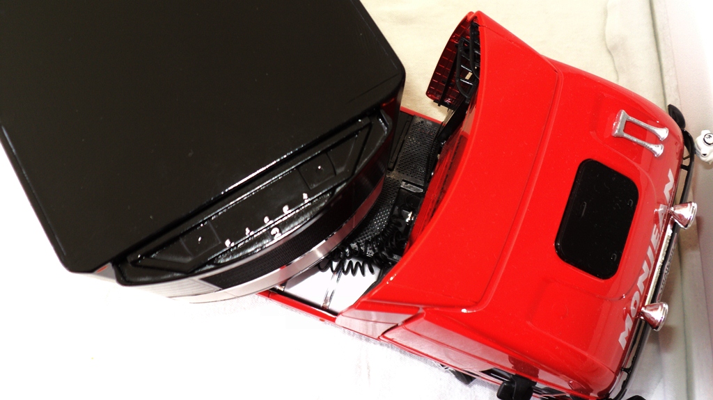 Я вижу Вы спец по оценке,так вот ; рама не под лаком вообще,никакие элементы жутким слоем не залиты(их там просто нет),слоев краски всего два,про не шпаклеванные стыки (ящики на раме )-это видимо отголосок Вашей ошибки в Вашей работе со шторкой (такие же пропуски),задний отбойник не реально маскировать(в реале вообще не видно) зато выкрашен в цвета Шмица,держатели упоров-согласен,исправлю!Надписи на покрышках можно не стирать шкуркой,достаточно перевернуть покрышку и там лысая поверхность,а я так захотел сделать.Ну,а последний пункт с выравниванием декали под общий слой с краской (как это делать,я не знаю)!!!