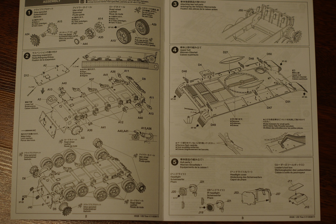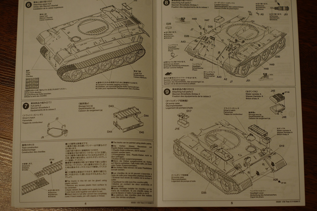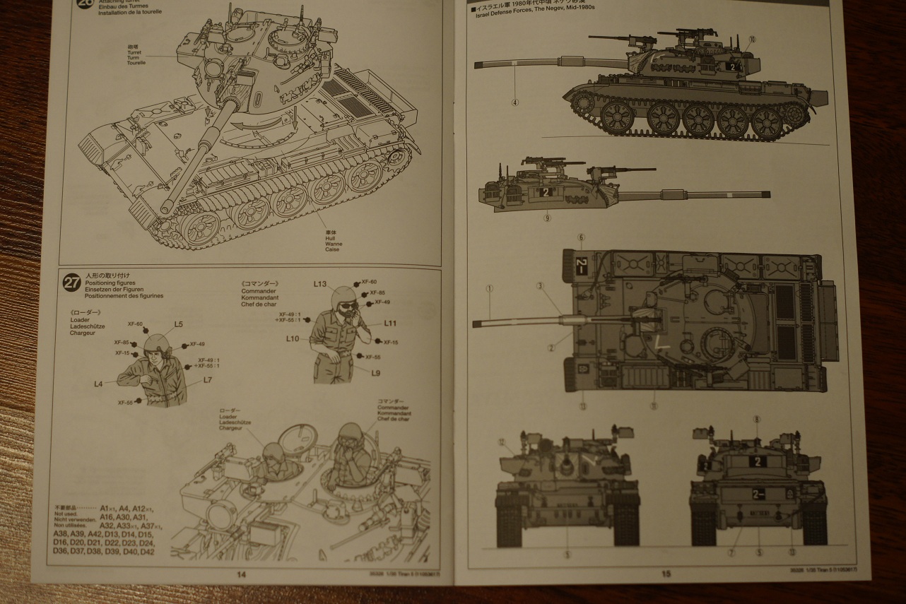Инструкция на 4х языках,в 26 шагах,расцветка одна,для основного цвета предлагают смешать хаки и светло серый.