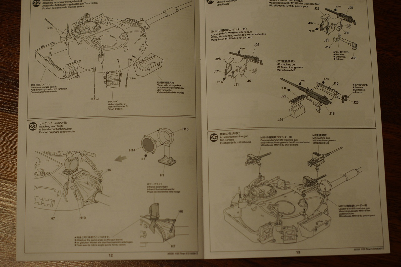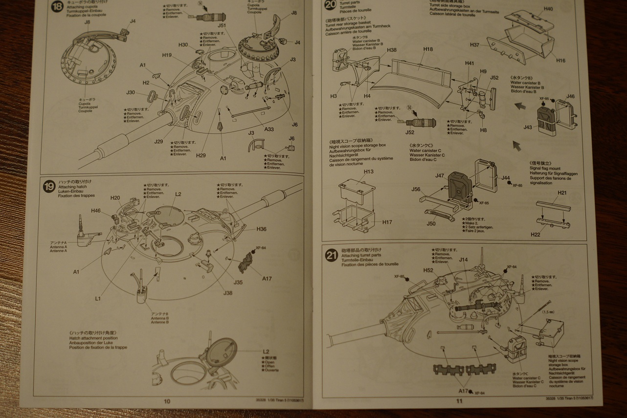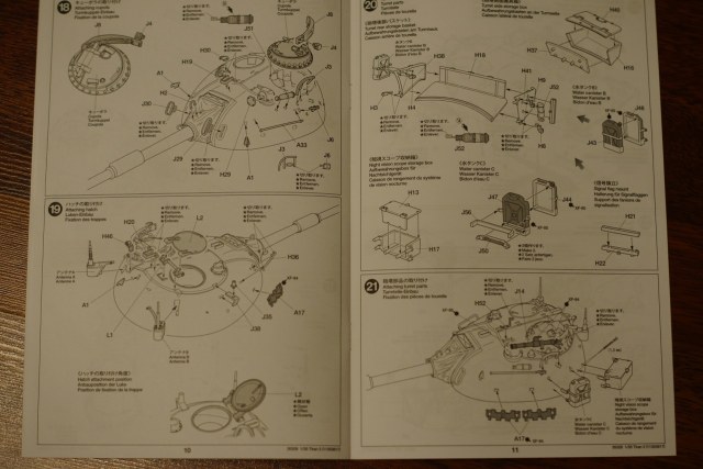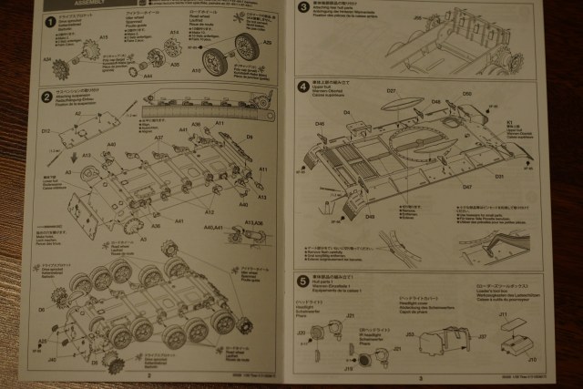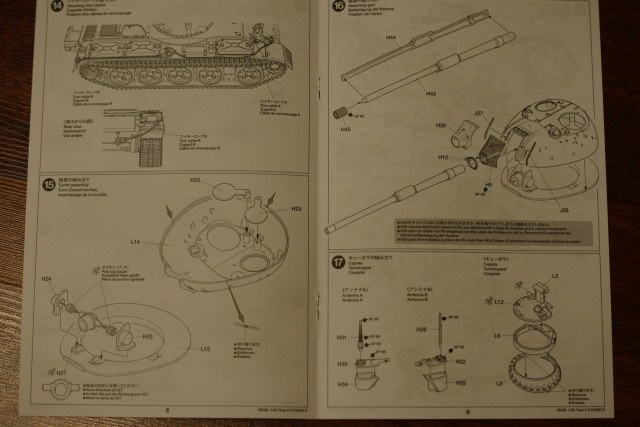 Инструкция на 4х языках,в 26 шагах,расцветка одна,для основного цвета предлагают смешать хаки и светло серый.