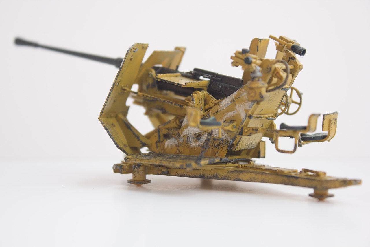 Хочу показать очередного участника задуманной диорамы . Модель делалась без затруднений , но когда полностью собрал , обнаружил некоторые перекосы "экранов" , не буду грешить на производителя , возможно это дело моих рук , в общем исправил без особых проблем . Эта модель понравилась ещё тем, что в комплекте с ней идёт большой ящик с двумя сменными стволами и ещё один поменьше с дальнометром , также были в комплекте ящик и лоток для снарядов этого флака . Впервые решил применить афтемаркет - точёный ствол от польской фирмы Aber , не пожалел , ствол стоил заплаченных денег .