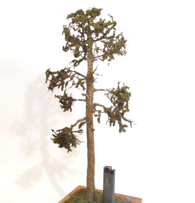 Дерево понравилось, для сосны , как мне кажется, в качестве листвы больше бы подошла синтетическая травка( не знаю как она правильно называется), у вас листва больше похожа на ель. В качестве коры можно попробовать использовать бумагу для изготовления искусственных цветов. На счет масштаба: в упомятутой вами книге написано, что если позволяет место хранения диорамы то можно делать и в масштабе, а так целесообразно показывать образ дерева, т.к. на фоне деревьев любая техника будет незаметна.