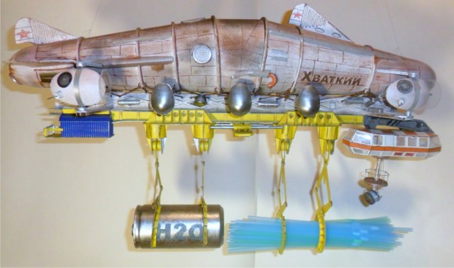 груз бы только заменить.подвесить там опору ЛЭП или хим реактор для какого нибудь завода хим.промышлинности.Или вообще ракету подвесить для воздушного старта.Но только в этом же стиле.Типа СССР выходит в космос.Вообщем работа понравилась очень.