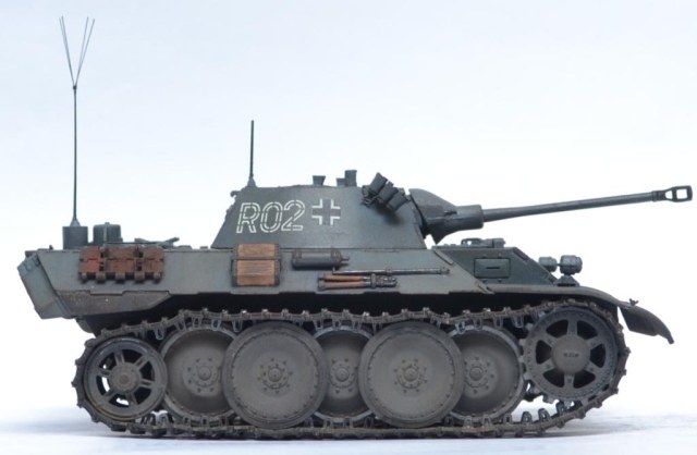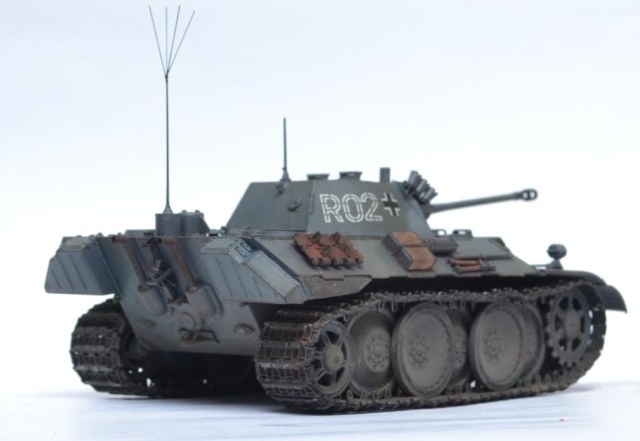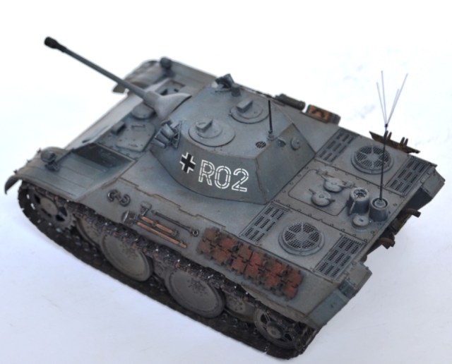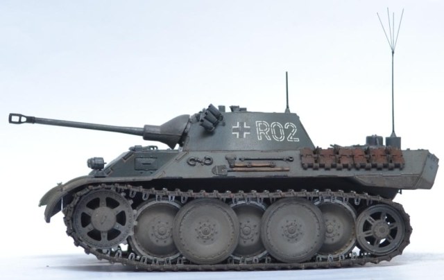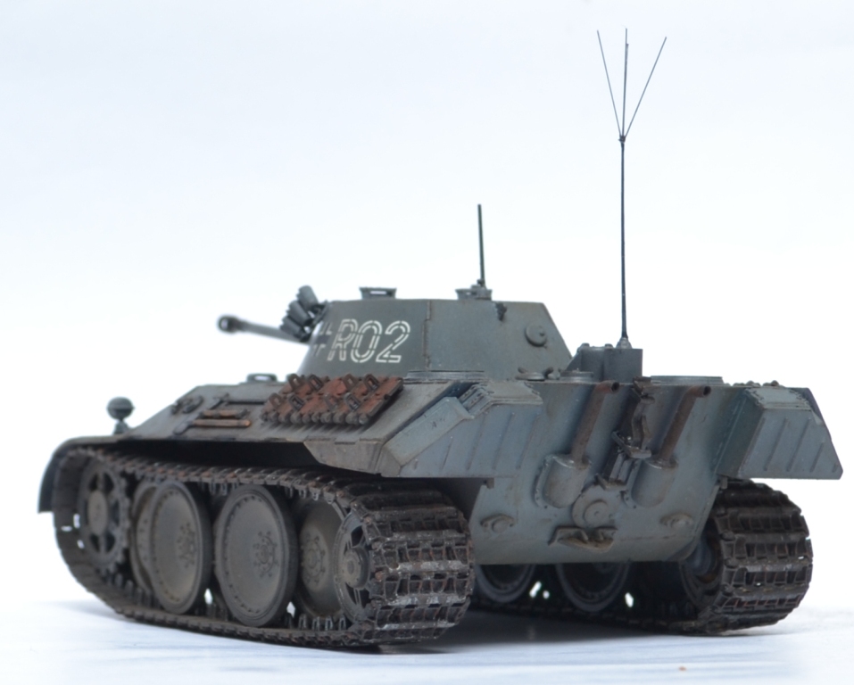 Гусеницы нелогичны и неудобны в сборке- производитель предлагает клеить по два гребня на каждый трак, что в десятки раз увеличивает количество ненужной работы. Поэтому гусеницы заменил на рабочий аналог от Bronco для ранних "Пантер" - копийность этих траков на высоте, и для рабочей ходовой весьма кстати.