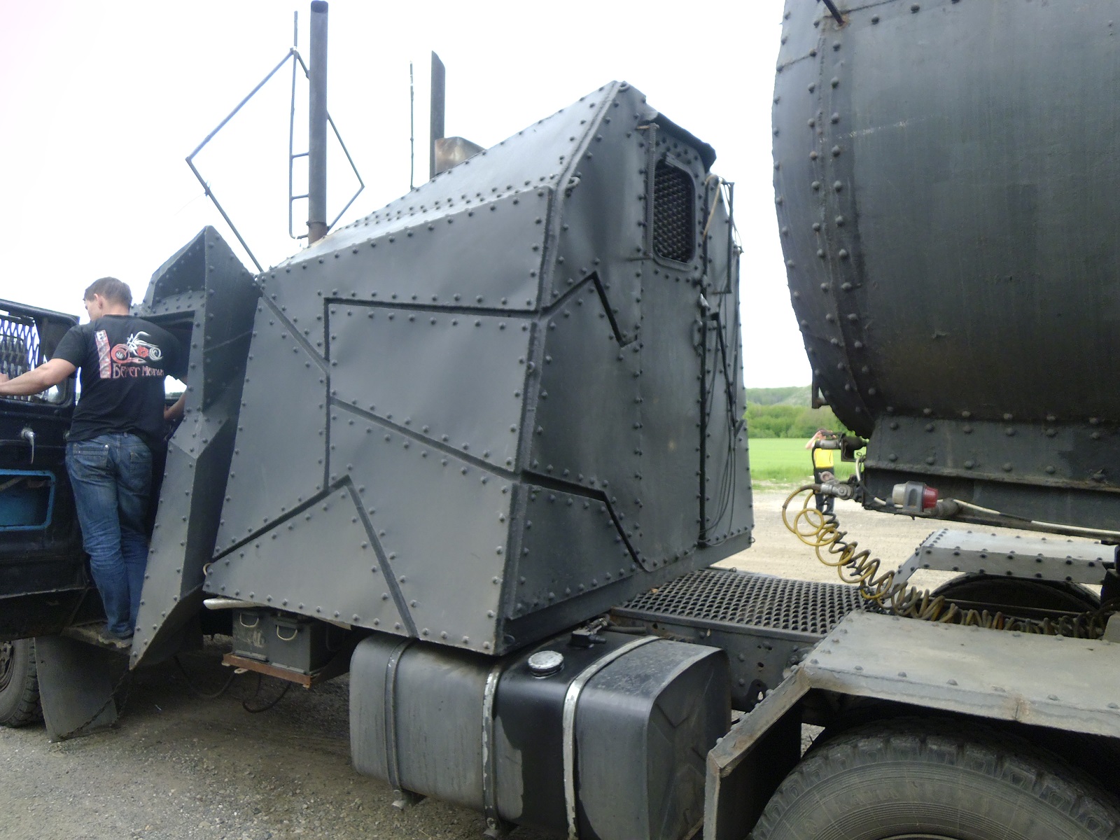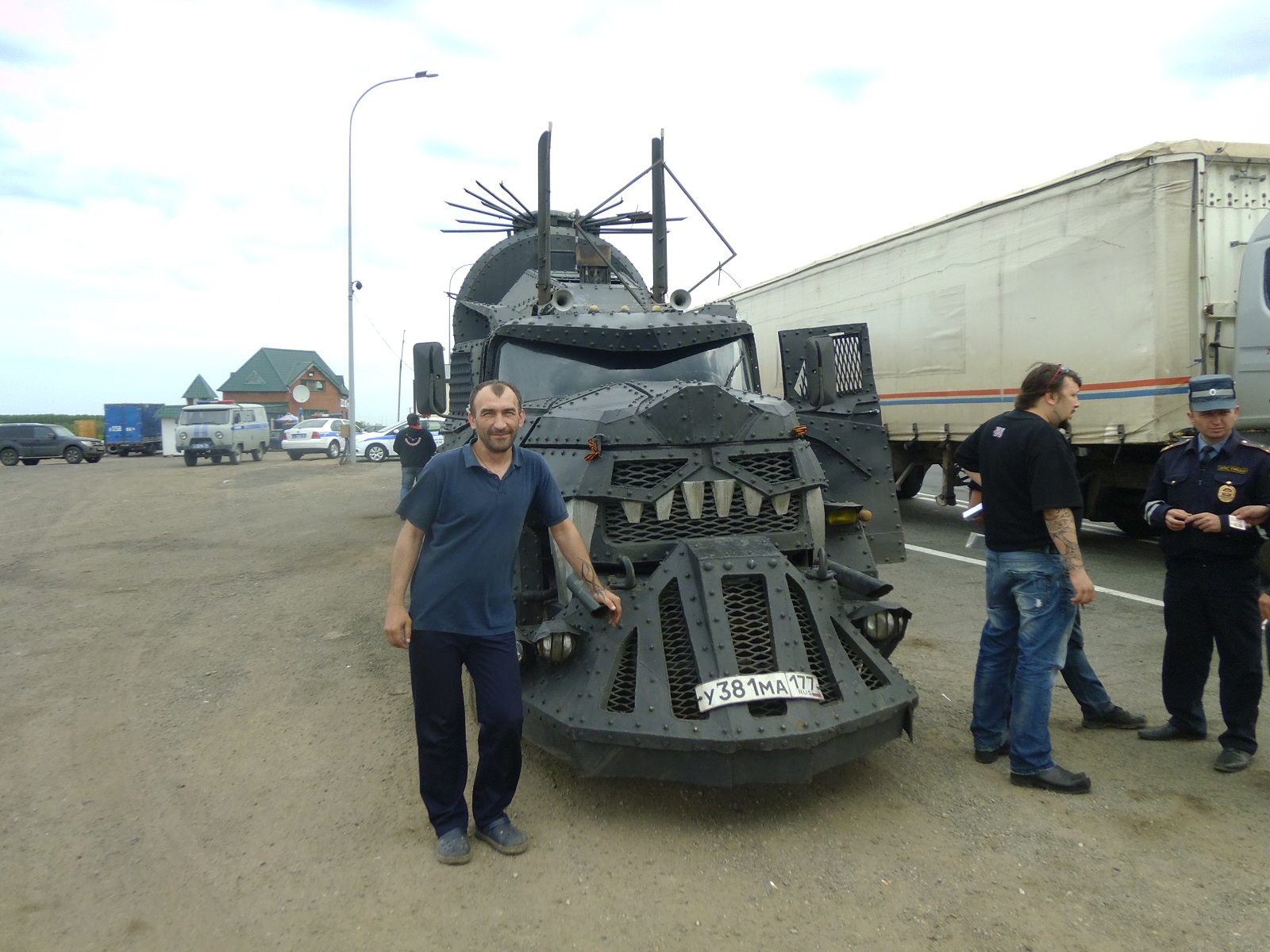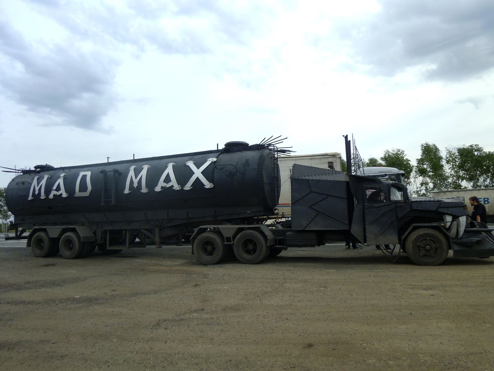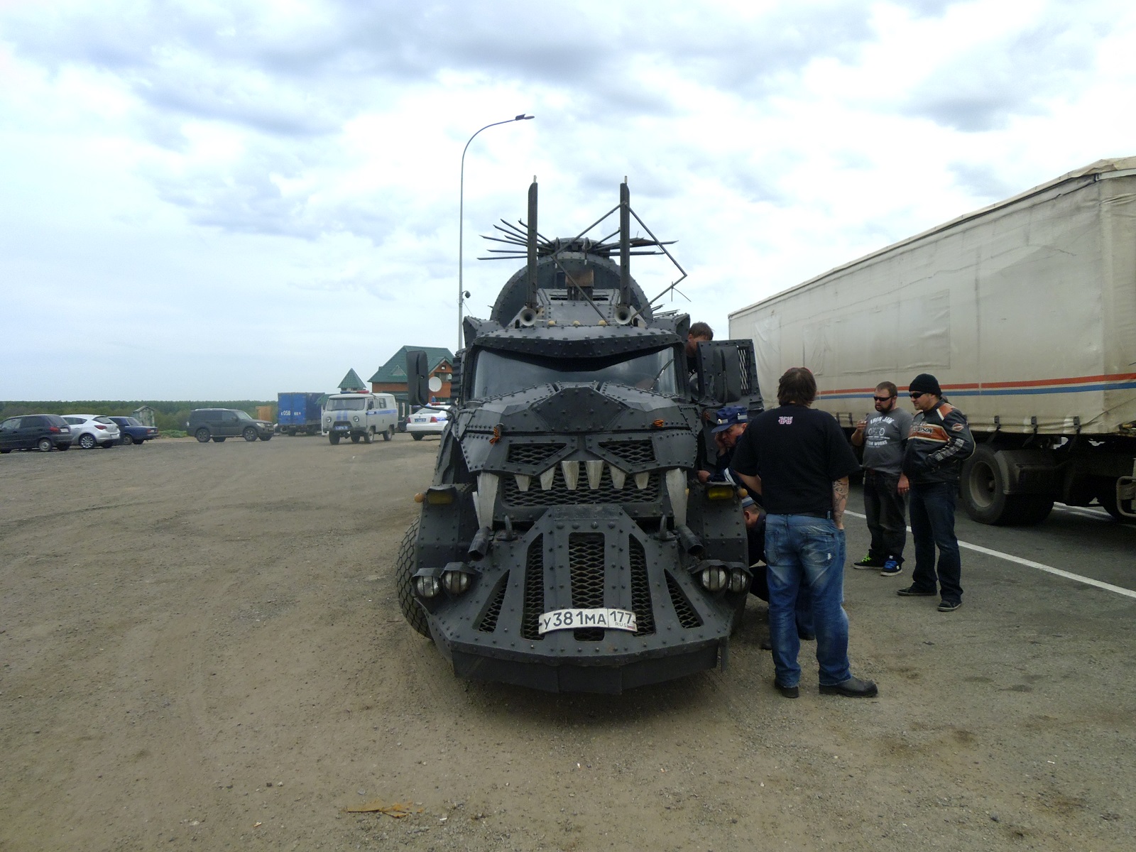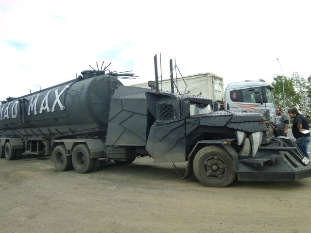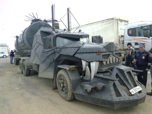 Сей агрегат стоит в Москве! На улице Нижние Мневники, прям напротив мотоклуба "Ночных волков", и рядышком есть более маленький, но не менее симпатишный грузовичок в стиле безумного Макса)