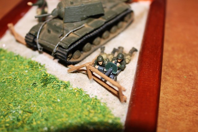 Уважаемый автор, первая диорама, это безусловно хорошо. Не останавливайтесь на достигнутом, и всё у Вас получится. Главное не забывайте об аккуратности и сочетании масштабов.