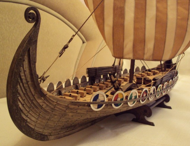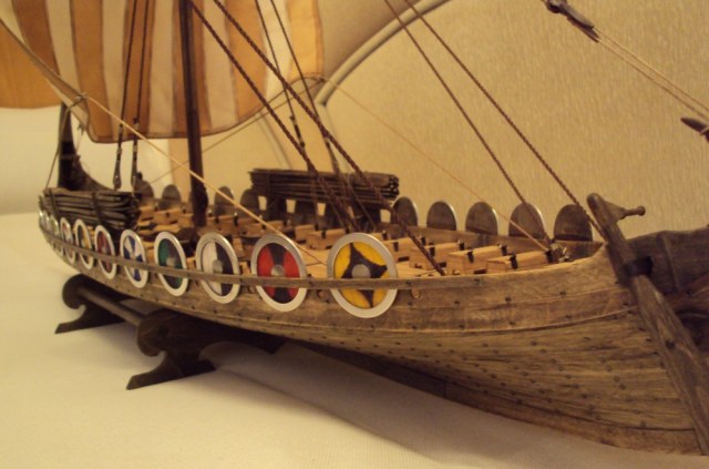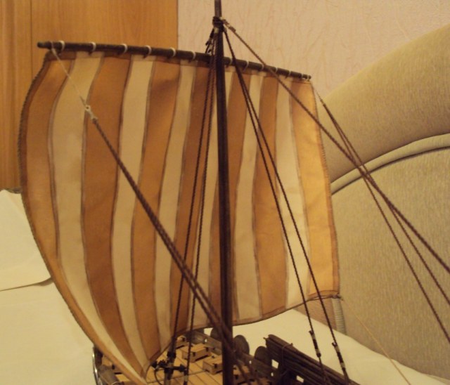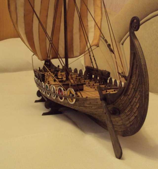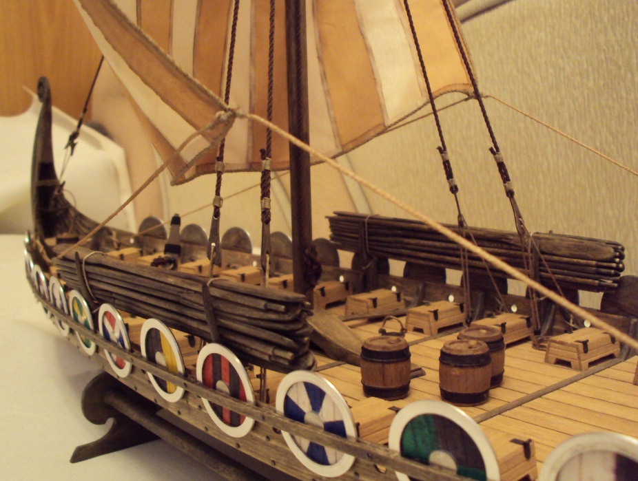 Масштаб модели очень не слабый, деталировку можно было выполнить до полного личного вооружения викингов на палубе и захваченных сокровищ, но и так хорошо выглядит )