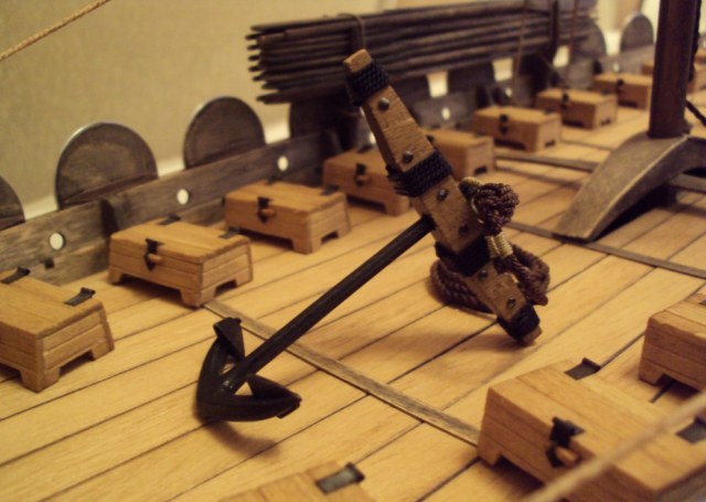 Спасибо всем, кто давал свои комментарии и замечания. По поводу якоря: данный рисунок якоря и ссылку я давал для Бориса Волконского. Верить этой информации или нет - это дело каждого. Да, мой якорь в более позднем стиле. Он покупной. Делать самому мне не позволяет мои нынешние производственные площади. Т.к. вряд ли кто-то купит, то корабль будет стоять у меня. Мне все в нем нравится.