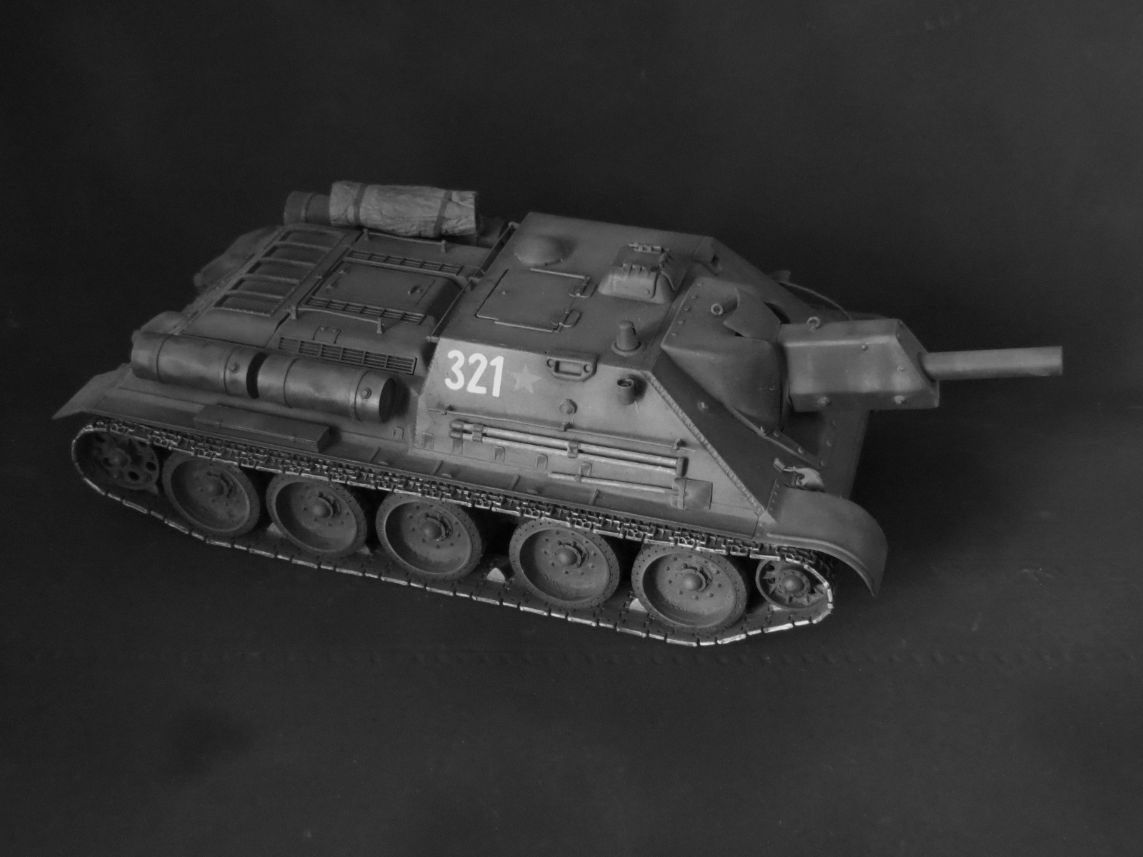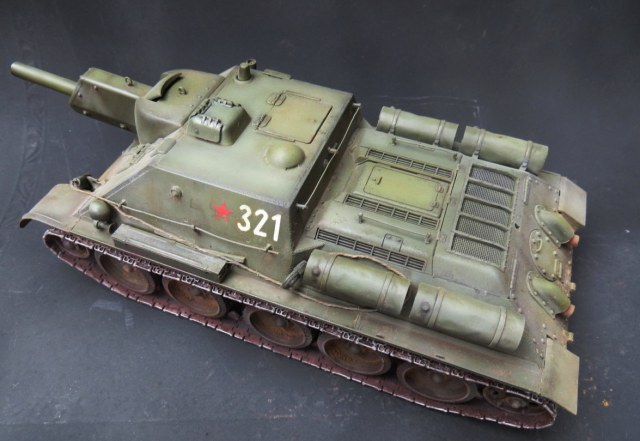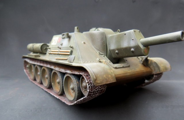 Была у меня идея сделать на базе данной машины один интересный агрегат. Но спросив у спецов на форуме какие нужны переделки идею оставил, до выхода нормальной модели )) В данном случае получилась не модель, а макет СУ-122. Оценок тоже по матчасти не ставлю, а вот окрас неплохой.