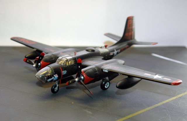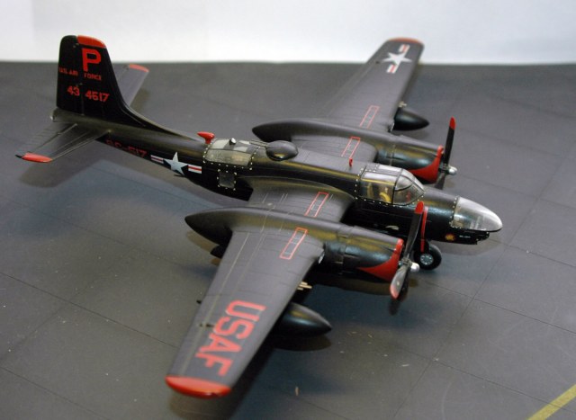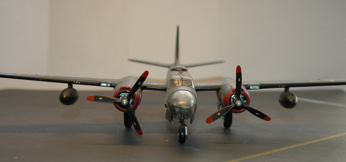 Модель собрана практически из коробки. Единственное, перешит раскрой. Окрашена нитро-эмалями. За годы "эксплуатации" пострадал фонарь кабины стрелка, но для удобства, будем считать, что там просто сильно накурено))).