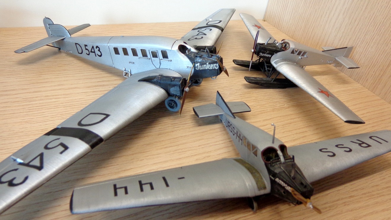 Спасибо за внимание. Отвечу на пару вопросов. Я собираюсь "затеять" еще один Юнкерс, вот на нем по возможности постараюсь обработать заднюю кромку крыла. "Алюминиевая" краска это эмаль Х-11 от "Тамии", разбавлял "Тиккурилой", красил в субботу, но только кажется, вчера она перестала липнуть к пальцам. С черной Х-1 та же история. Не иначе как аномальная жара влияет. А "цивильные костюмчики" ЮГ-1 надели в 1930-32 годах, когда новенькие ТБ-1 поперли их с военной службы. Кстати, а вот Junkers G24 реально собирались покупать для обслуживания некоторых линий "Добролета", но не случилось все таки.