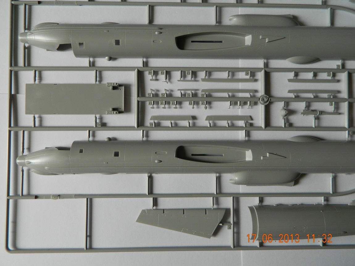 Здравствуйте каропчане!!!И снова я вас решил порадовать обзором кита всеми известного производителя(трампетера)-Ту142МР,т.к. тут есть уже готовые модели,а обзора как с Ту-160-ым нет.Приобрёл всё там же в магазине, набор также как и 160-го залежался на полочке, где то полгода,цена 4500р,всё также как и у предыдущей модели большая глянцевая коробка.И так внутри коробки:-9 литников;