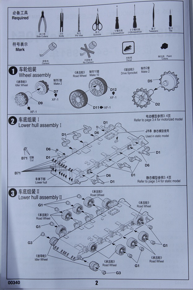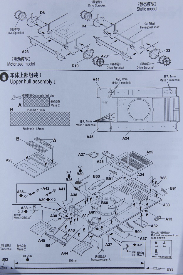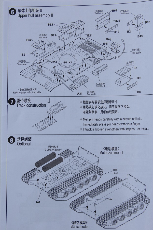 Инструкция в наборе хорошая подробная но, полистав ее, понял одну вещ, ведущие звездочки ни к чему кроме редуктора не крепятся… (опять веселье) хотя могу и ошибаться сборка покажет, что к чему. Ещё мне понравилось пластиковое бревно.. это просто кусок трубы, какой то, но ни как это не бревно. По-хорошему на этот набор обязательно нужно брать травление, наборные траки (скорее всего это будет мастерклаб), ствол, пулеметы, при чём ДШК тоже нужно менять, фары эльф и антенну. Я не говорю о куче проволоки, из которой придётся делать топливные шланги на баки и проводку.