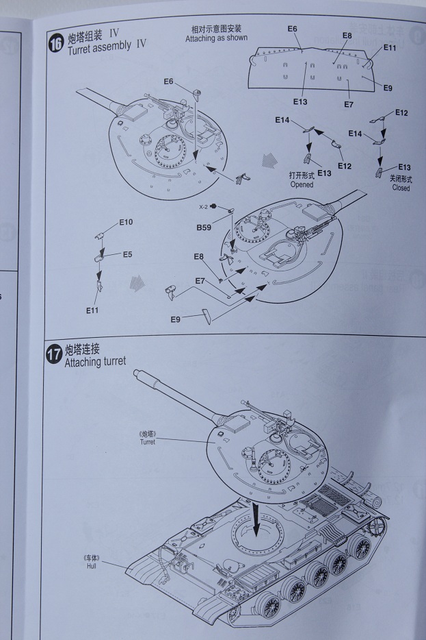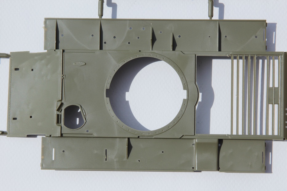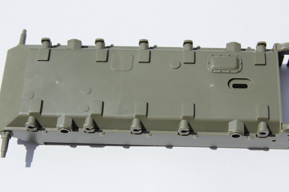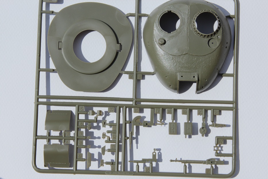 Предлагаю вашему вниманию обзор танка Т-54А от фирмы «Trumpeter» . Открыв коробку мы видим 7 литников зелёного пластика очень похожие на тамиевские причём по цвету, пластика я подумал, что это перепак. Но внимательно приглядевшись понят, что ошибался, качество по сравнению с тамией немного хромает, да и на ванне корпуса есть клеймо с названием фирмы и датой. Ещё в наборе имеются виниловые траки, их качество просто ужасное к тому же мне повезло мало того, что они ужасны так ещё и скручены в узел и от времени очень сильно деформировались, в общем, вердикт ясен, и они пошли в мусор. Ванна корпуса дана отдельно но на ней имеется отверстие для выключателя т.к трубач даёт модель по р.у. и в ванне имеются отметки под редуктор и отсек с батарейками. На большом литнике с мелкими деталями корпуса и башни производитель отрезал лишние детали, о чем на говорят две большие прорехи по их размерам могу предположить, что там находились две половинки башни, скорее всего это литник от т-55(но могу и ошибаться). В наборе имеется два литника со стволами состоящие из двух половинок, но качество этих стволов оставляет желать лучшего и мной сразу был куплен ствол от «моделПоинт». При беглом осмотре мной не был замечен спаренный пулемёт в башню, но при более детальном осмотре была обнаружена детально бронировки пулемета, в которой торчала маленькая пипка которая, по мнению производителя, и есть пулемёт.. .ну и конечно пришлось купить её замену от «моделПоинт». Мат. части этого танка я не знаю, но думаю, пилить там много придётся. Ещё меня повеселило остекление триплесков и пробора наблюдения в башне это тонкая прозрачная пластинка с вырезанными в ней стёклышками напоминает пластик от бутылки (тоже обязательно менять). При попытке соединить корпус и ванну обнаружил большую щель (трамп радует всё больше).
