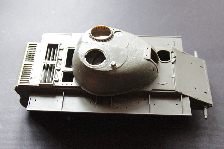 Есть у меня такая модель... смотрел матчасть, хотел делать Т-54 обр. 1951г нормальную, и понял - эту можно просто взять и выкинуть. Неправильное ВСЁ, кроме баков на крылья. Не тратьте время, отдайте модель пионэрам ,а себе возьмите Тамию..