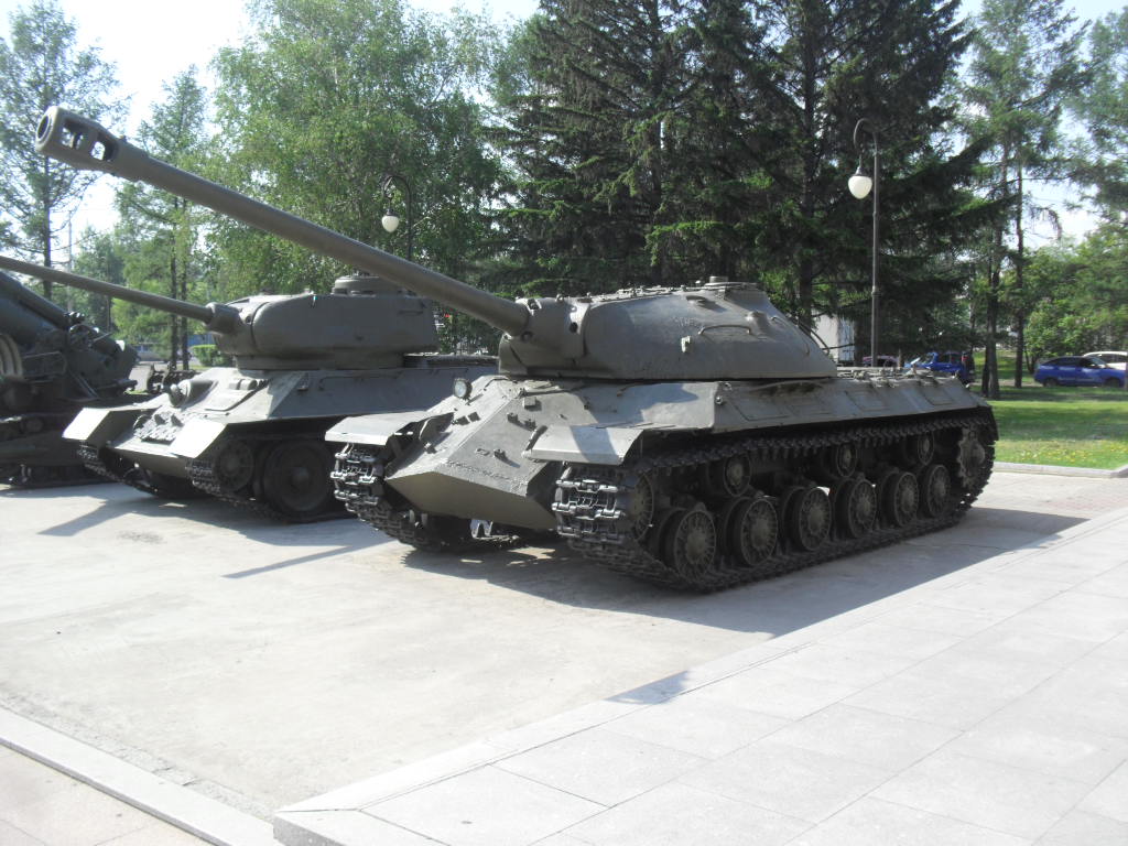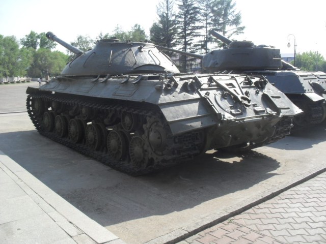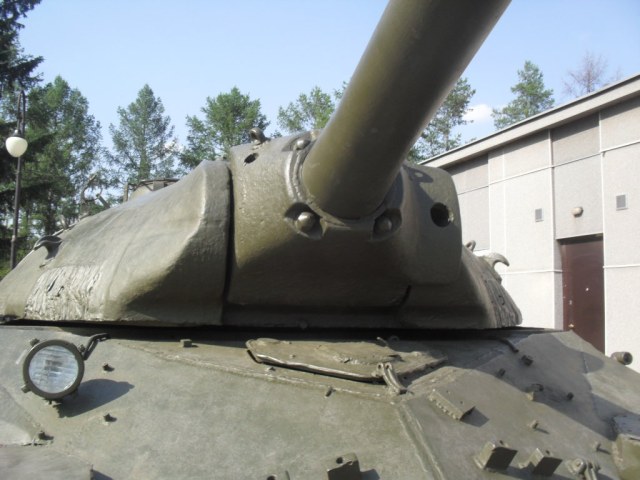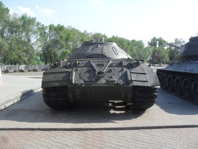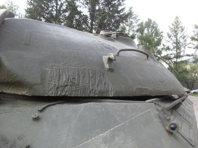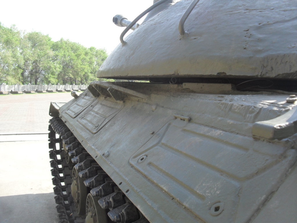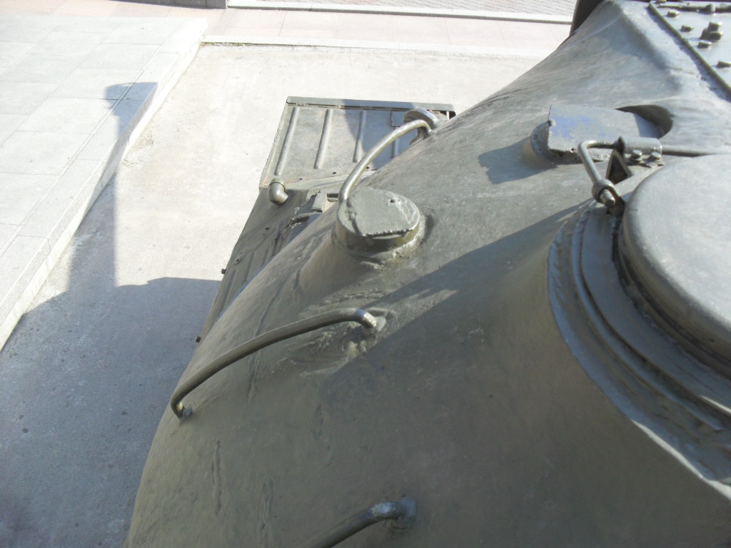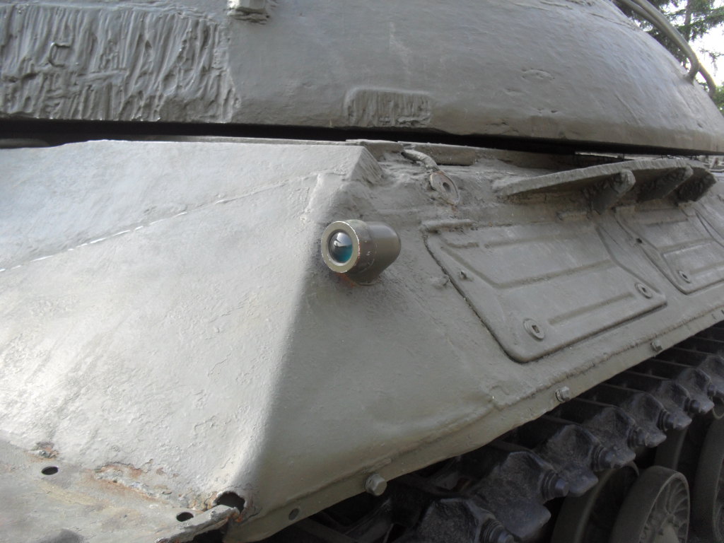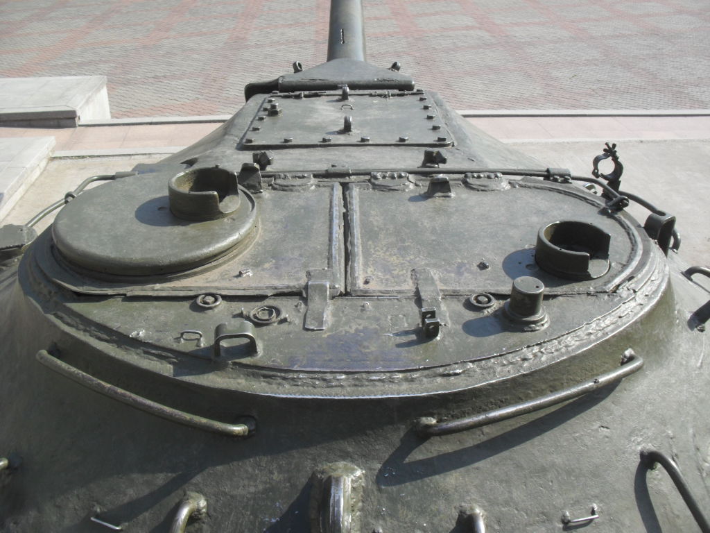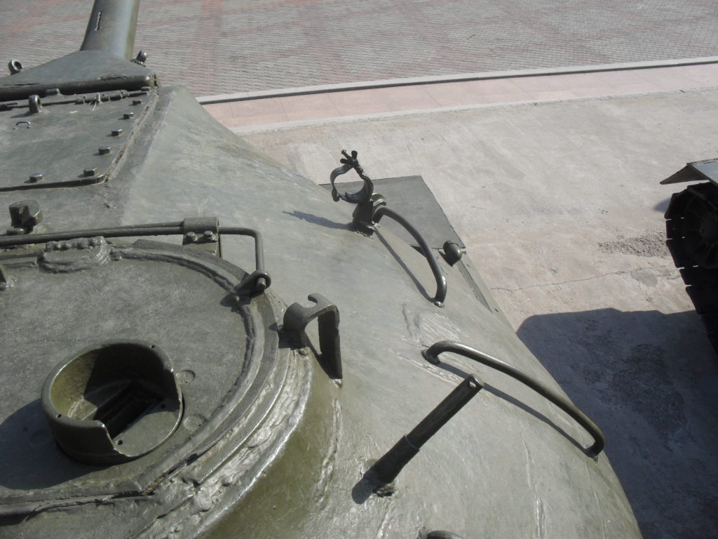 С машины содрано все "лишнее"....нет ИКфары и защитные решетки для обоих фар....нет кольца ЗПУ(обычно убирают пулемет, а кольцо оставляют....все исы-3 довели до М и ....сократили.....а Ис-2 снят с вооружения Приказом МО в 1995г....вместе с Т-34