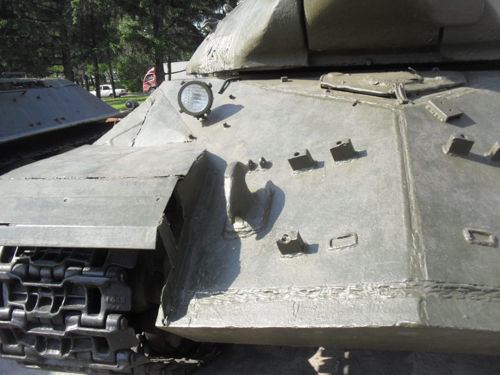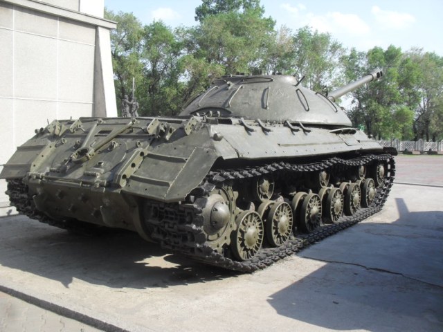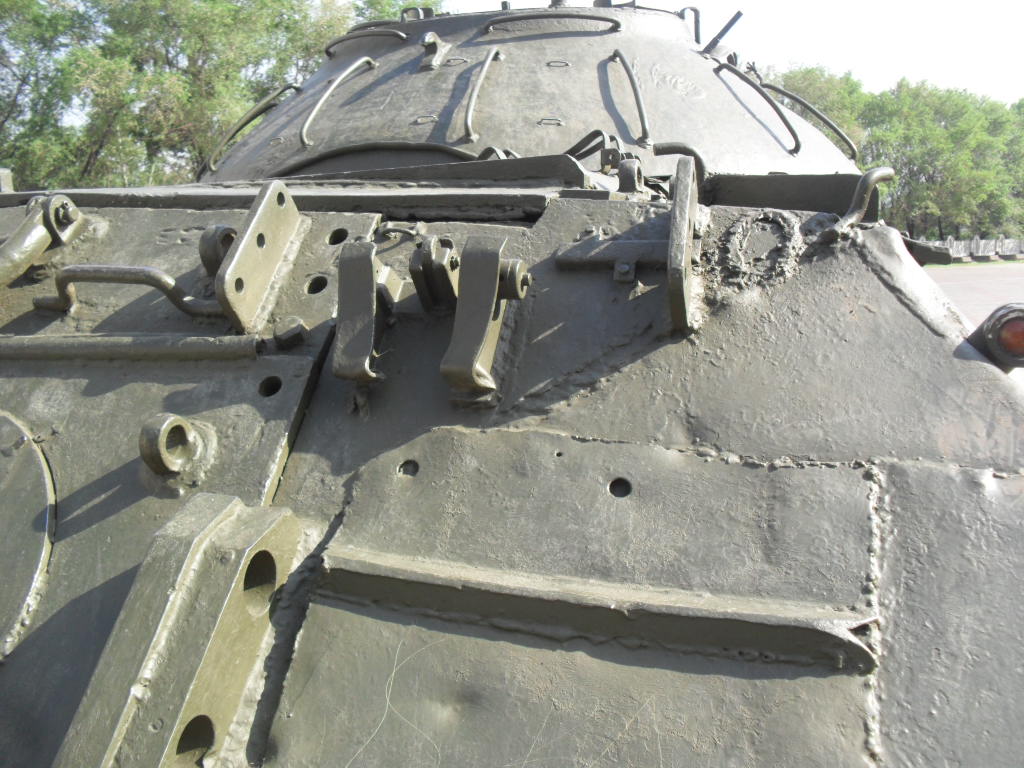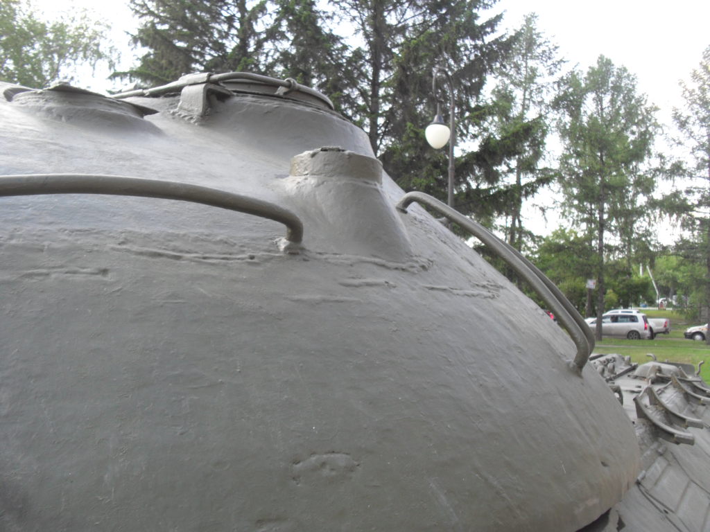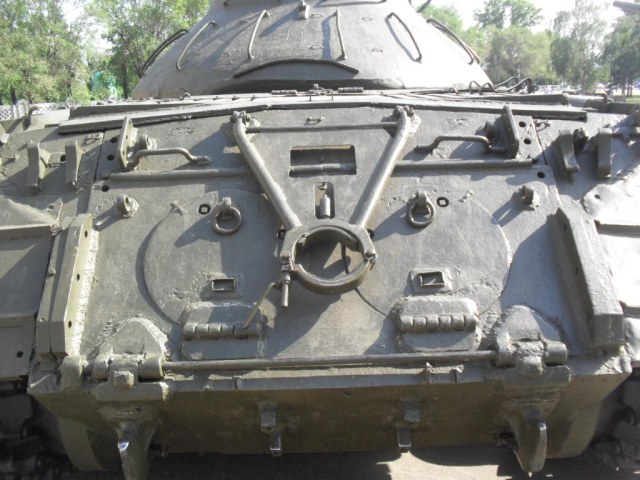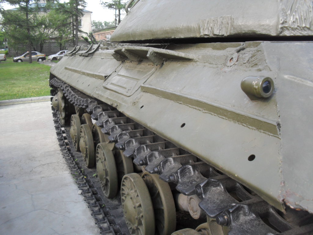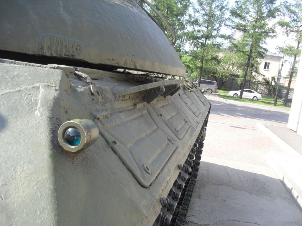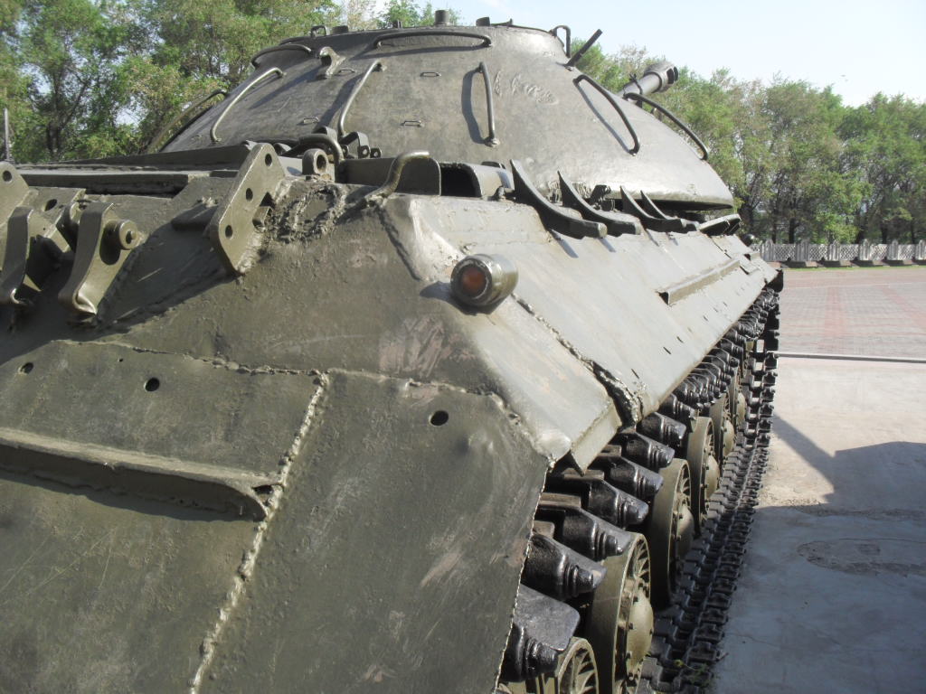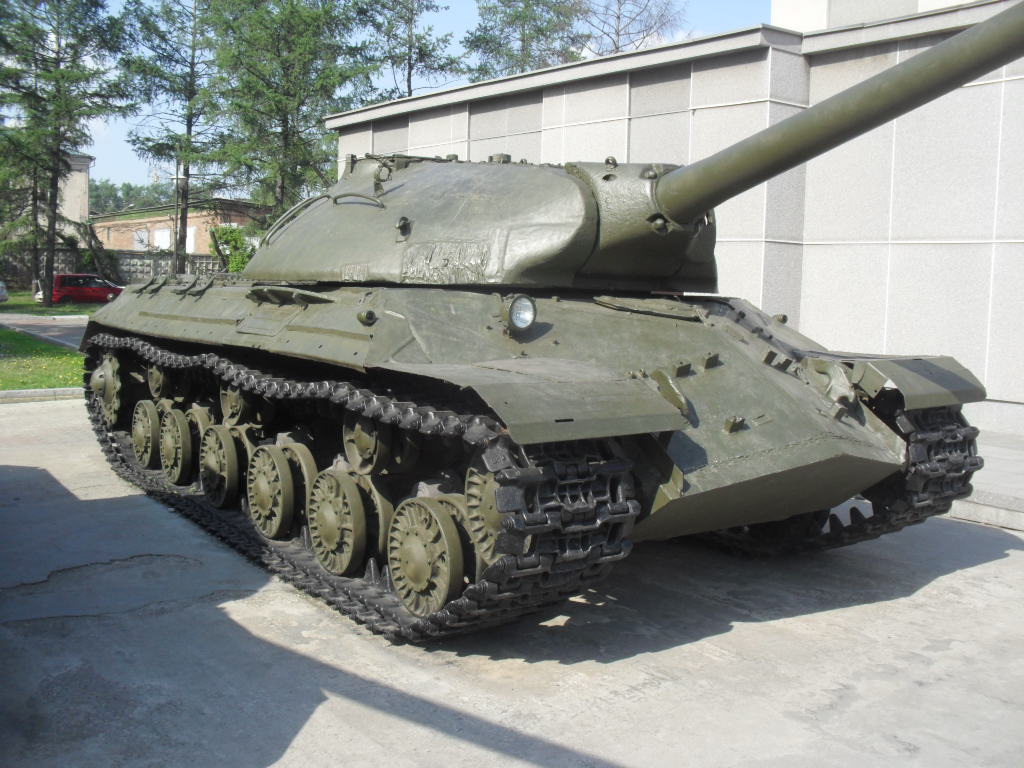 С машины содрано все "лишнее"....нет ИКфары и защитные решетки для обоих фар....нет кольца ЗПУ(обычно убирают пулемет, а кольцо оставляют....все исы-3 довели до М и ....сократили.....а Ис-2 снят с вооружения Приказом МО в 1995г....вместе с Т-34