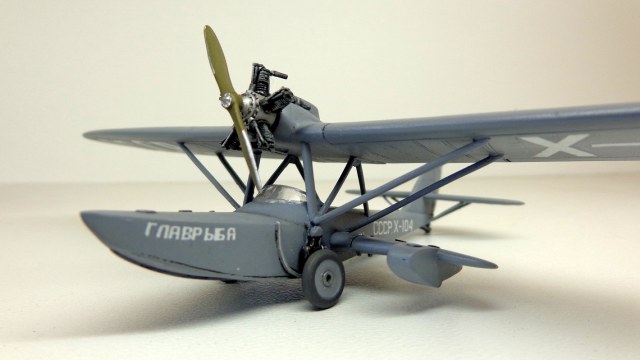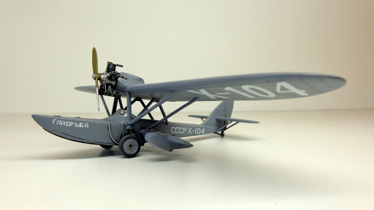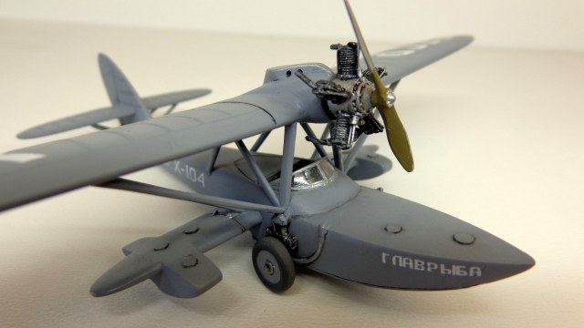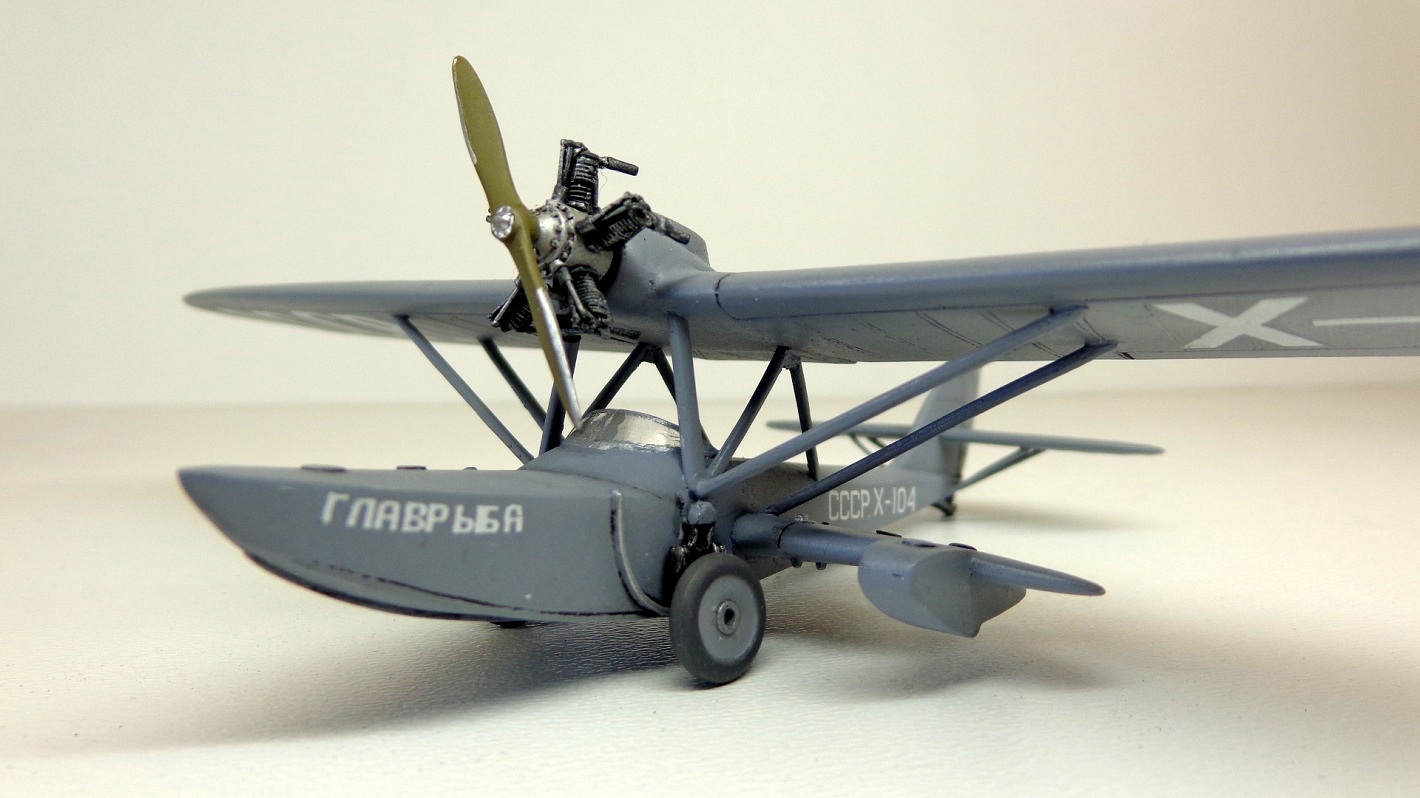 Модель Ш-2 была мной приобретена очень давно(кстати вместе с ЦКБ-15). Тогда же начал собирать ее, но потом вдохновение пропало. И вернулось оно только в этом году. Сборка не затруднительна. Двигатель заменил на смоляной М-11. В соответсвии с прототипом, борт "СССР. Х-104", он должен бы иметь зимний капот, но мне не захотелось прятать в него такой "живописный" моторчик. Да, и спицованных колес тоже нет. Но добавил недостающий этой модификации обтекатель скрывающий то ли масло-, то ли бензобак, и еще лючки на лодке и поплавках. Окрасил "Звездой-супер". Вот такая получилась "Главрыба"(или "абырвалг", как в "Собачьем сердце").