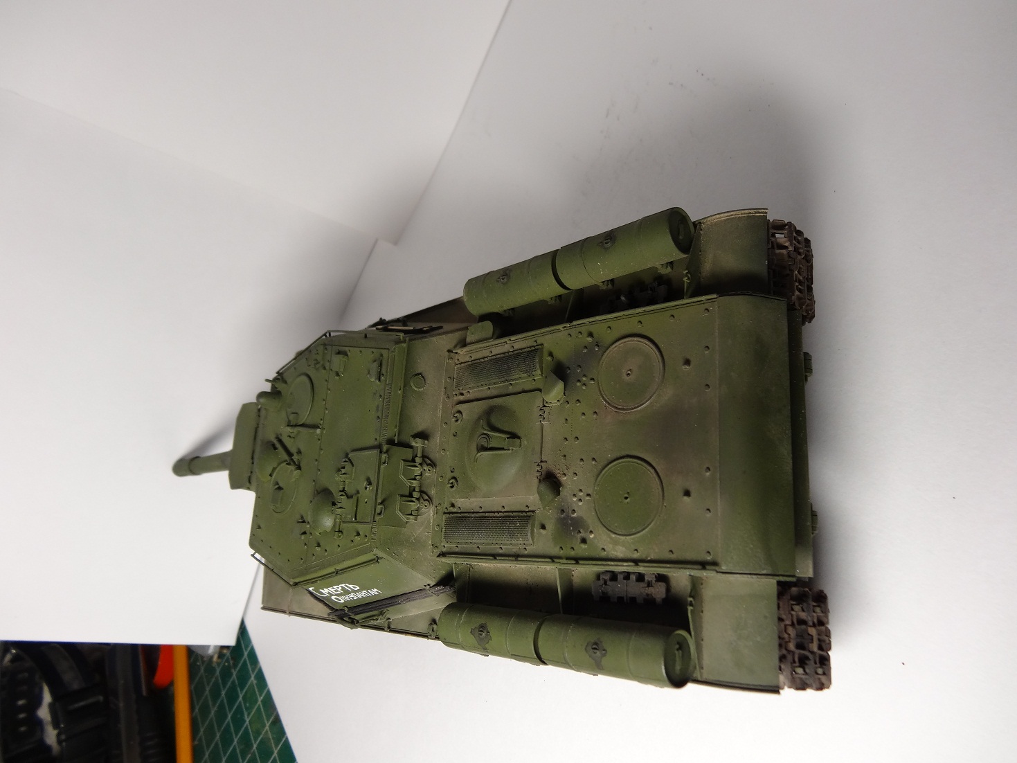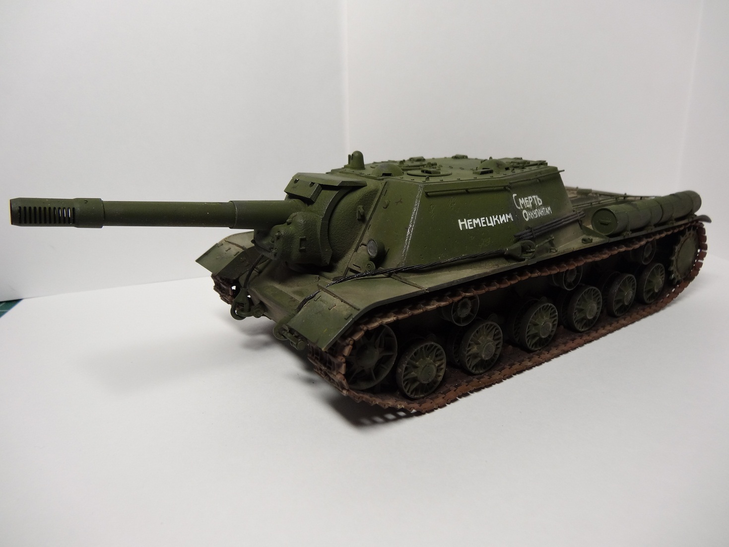 Ничего не добавлено,да и не особо надо-набор шикарен. Стыкуемость деталей на высоте. Данный набор позволяет сделать рабочии подвеску,гусеницы, открывающиеся люки. В общем сборка модели доставила лишь удовольствие. В матчасть сильно не лез-редко посматривал фронтовые фото на предмет перлов как у звезды-не нашел большого криминала кроме решеток МТО.