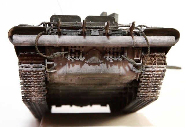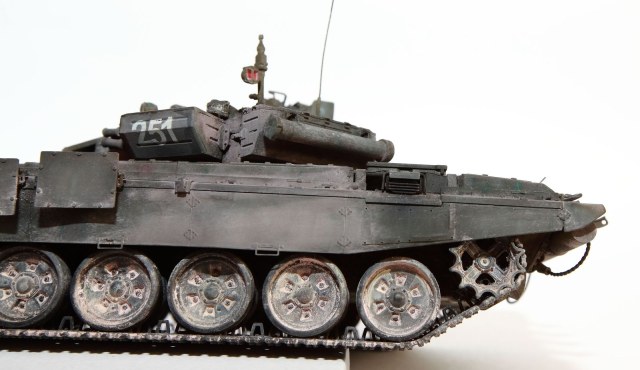При покраске начал с грунта тамия и он сильно расстроил меня дав эффект "манки" на башне, после сделал першейдин( если я правильно употребил слово, предварительное затемнение). Затем задул в базу, сделал небольшые высветления на плоских деталях. Следом глянец с декалями, они в свою очередь порадовали отличным исполнением, и фильтром чуть высветлил модель.затем матовый лак и масленые точки. После задул копать выхлопа акрилом. На ходовой прокрасил гребни траков для придания металлического блеска. Затем пошли пигменты использывались светло серая дорожная пыль GP05 и коричневая земля GP06. По моей задумке так после длительного марша по проселочным дорогам.