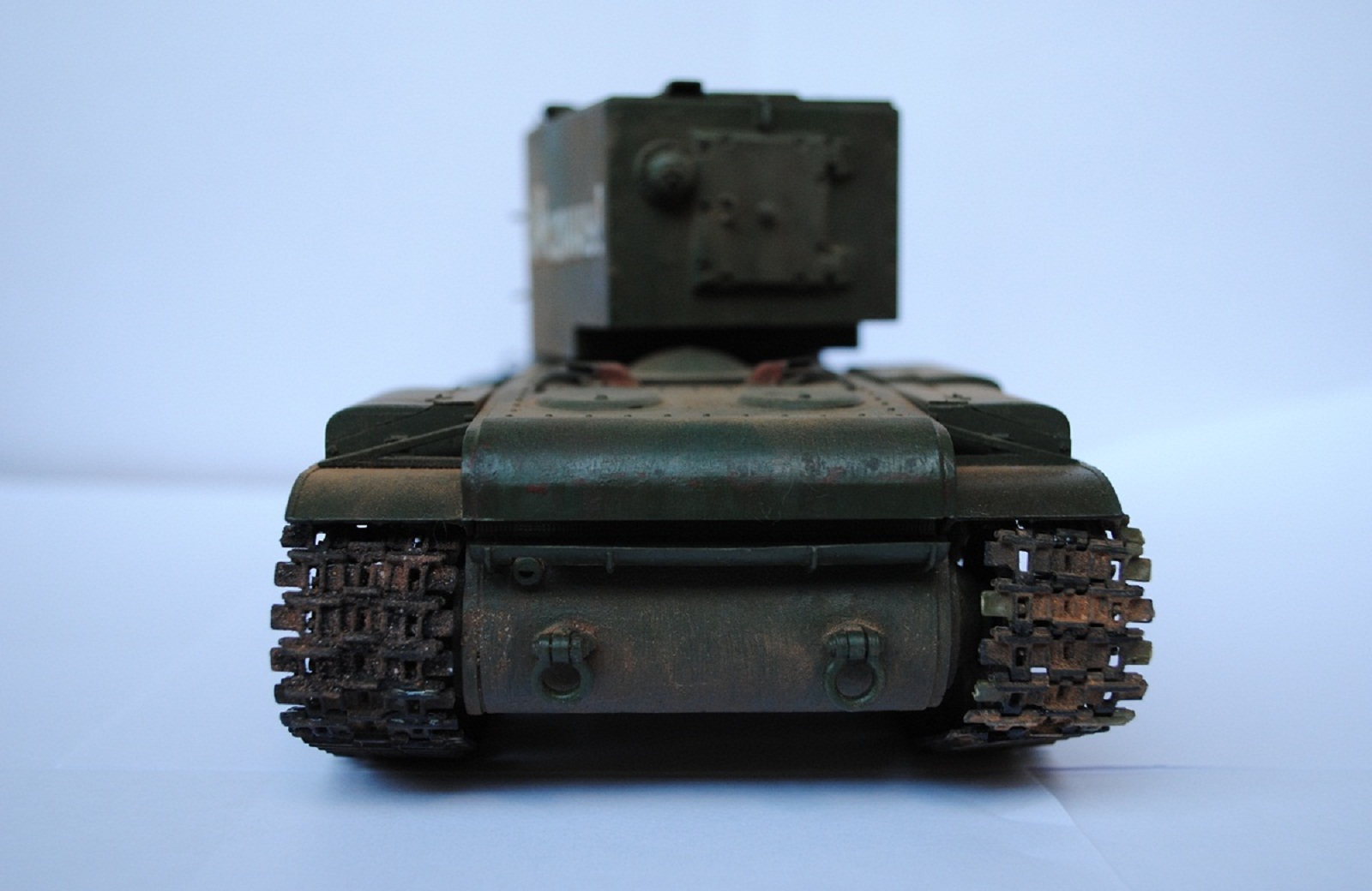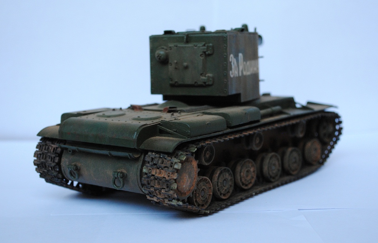 Не хватает деталей,а именно:крышек ступиц катков(вроде так называется).В-общем,круглых деталей с гайкой посередине на катках.Также было бы неплохо зашпаклевать отверстия для приклейки дополнительного бронелиста на нижней лобовой детали.Не хватает бронировки пулемётного гнезда на лобовом бронелисте(но это,конечно,не критично).И советую делать смывку точечно,т.е. не заливать весь танк,а капать жидкой смывкой на щели и гайки-краска за счёт текучести должна быстро заполнить щели и окружить гайки.Вот,удачи вам)