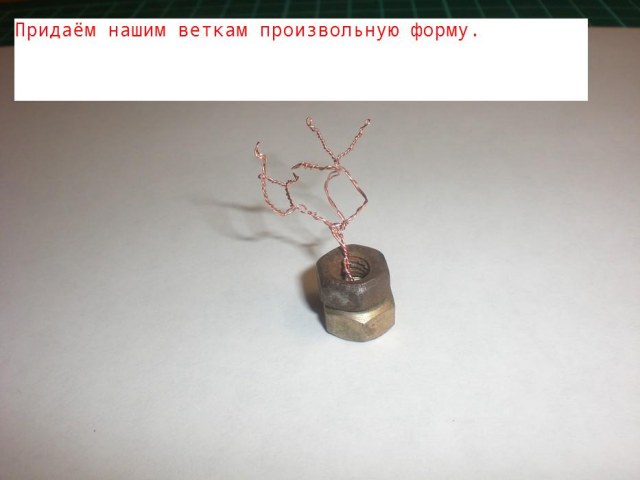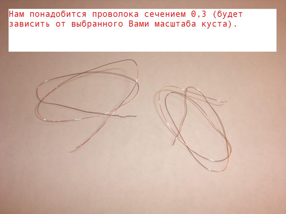 И еще: я для основания дерева (ствол и ветки) использую толстую (относительно) проволоку, а для мелких веточек - тонкую (по секрету, тонкая проволока есть в проводах мышек и клавиатур ;-).