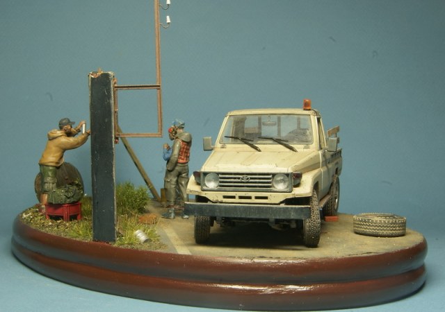 Небольшой сюжет с использованием новинки от Meng Models - очередного (надеюсь не последнего) тойотовского пикапа, фигурок от Industria mechanica и Black army models. В сюжете ни чего такого, чего бы не могло произойти.