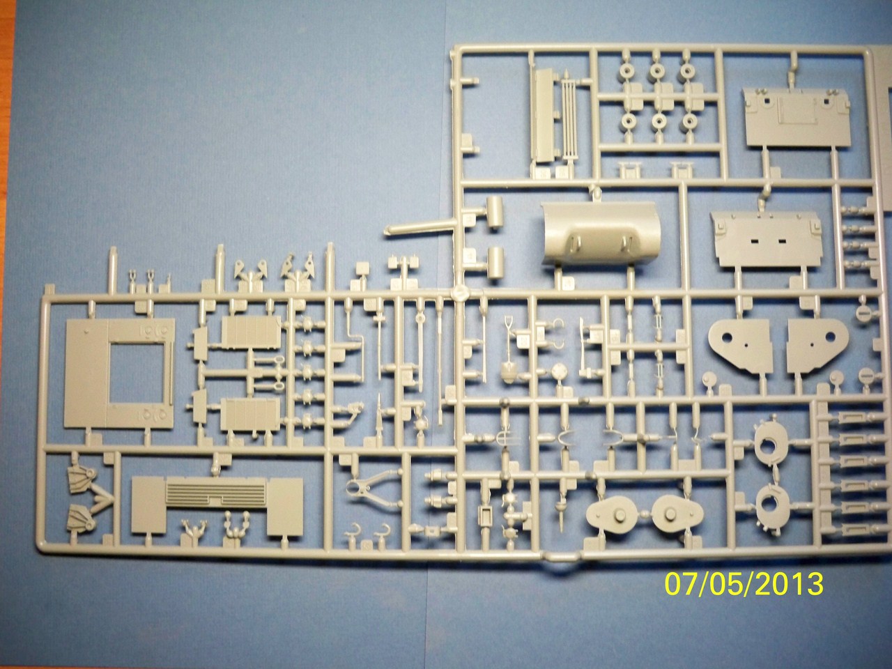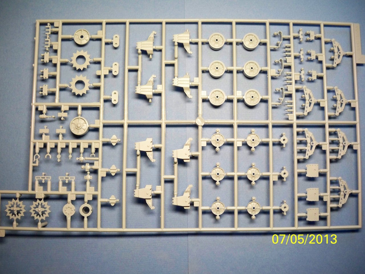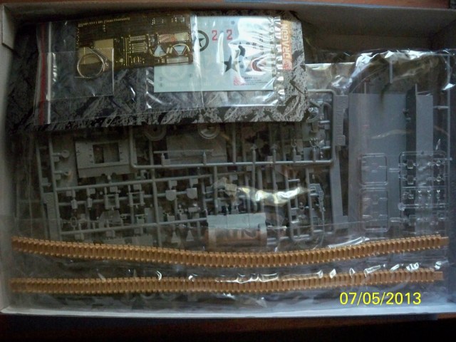 Итак, к набору. Коробка привычно заполнена до верху литниками, сверху гусеничные ленты из резины. При беглом осмотре брака не найдено, на лобовых деталях видны литьевые номера. Ствол цельный пластиковый, и если честно, я не вижу смысла менять его на железо. Набор дополнен платкой с травлением. Собственно, мне даже больше нечего добавить. Обычный Драгоновский комплект. Единственное, что сильно удивило - чрезмерно высокая цена, на мой взгляд. Как это иногда бывает с Драгоном - абсолютно не ясно за что. Наборы с похожей комплектацией бывает стоят на 300-500р дешевле. Китайцы за него просили аж 1800р, я поискал и смог найти за ~1450.