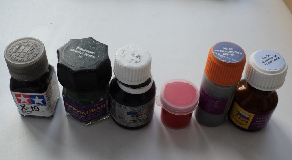 Заливать в аэрограф эту краску не имеет смысла по причине малого объёма, а вот красить мелкие детали удобно. Я с удовольствием взял их в отпуск малюя внутрянку на двух моделях во время дождливых дней в карельской деревне.