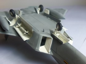 Хочу показать Вам эту модель т.к. эта машина мне просто нравится,да и не так часто бывает на сайте.Модель хорошая,но немного пришлось повозиться,не все детали идеально стыкуются.Изменил номер борта и подвесил топливные баки.Красил аэром,нитрой,цвет мешал сам.Пачкал акварелью и пастелью потом покрыл матовым лаком (акан).