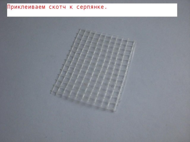 1)Серпянку приклеиваем к скотчу( клеящимися сторонами друг к другу).