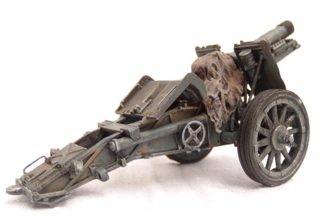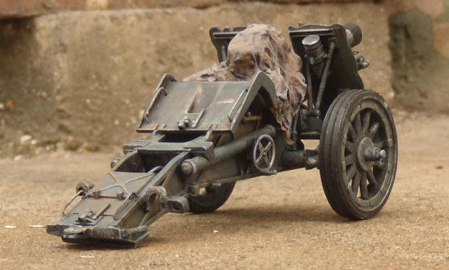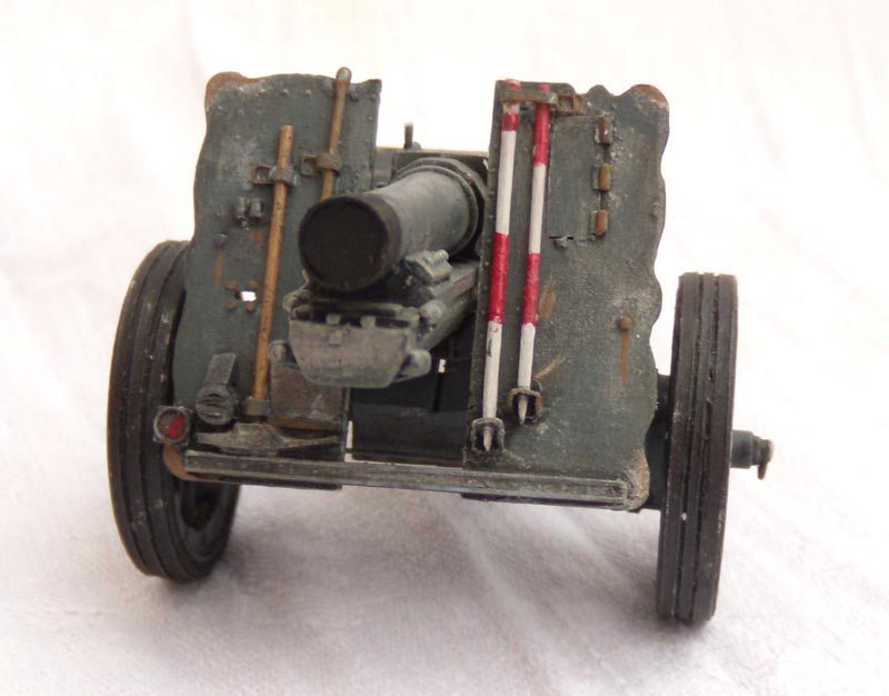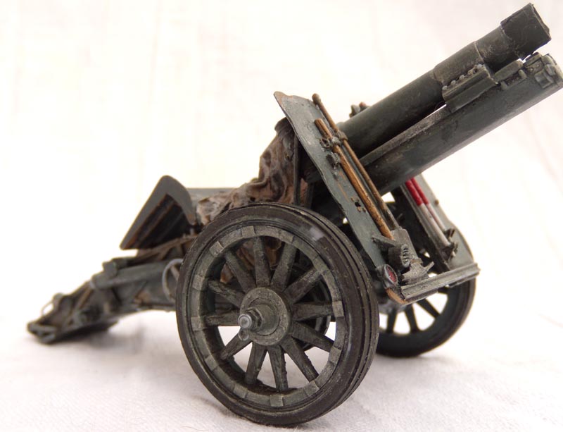 Не много, расскажу, о доработках.Орудие в транспортном положении, так, как будет частью диораммы.Добавил обрезинку на колеса, крепеж шанцевого инструмента, лопата-самопал.Рассверлил крепеж для установки на сау,сделал пробку на ствол(потерял ремешок), колышки сделаны новые. Фару рассверлил и вклеил новую защиту. Добавил недостающие клепы и ребра жесткости. Огромное спасибо, Володе Слюсареву, за очень удачную фотоссесию!