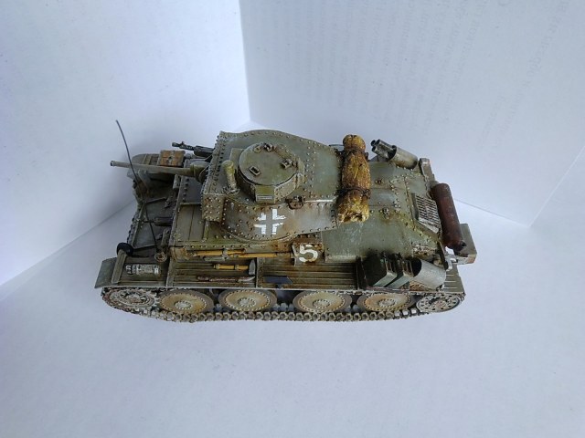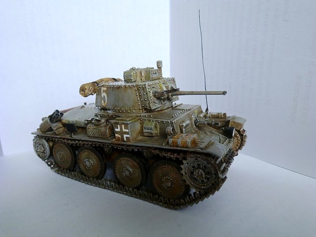 Здравствуйте, Уважаемые каропчане! Представляю чешскую Прагу ориентировочно 8-й танковой дивизии вермахта конца лета 1941 года. Модель от Макета и этим всё сказано... хотя я старался...Понятное дело, что придет сейчас Руспатриот и скажет, что это "песок голимый". Я всё понимаю. Просто хочется , чтобы просмотров работы было больше. К сожалению, у моей мыльницы режим макро начинается только с 15 см, так что сорри за крупные планы и отсутствие возможности хорошо разглядеть мелочи... Почти из каробки. Красил автогрунтом. Смывки масло+ уайт -спирит, тонировка и фильтры маслом, масляные точки и пр. , глянцевый лак-авто+ матовый - тоже, пыль и грязь - пастель+тройной одеколон (водка кончилась- не ромом же разбавлять!!! :)) Добавил фару от Эльфа,номера и тактический знак 8-й танковой дивизии, крепление канистр и домкрата, скатку и ее петли для крепления, грязь и пыль на ходовую. Удачного Вам просмотра, а мне - ваших полезных комментариев (надеюсь). С уважением, СЕРЖ.