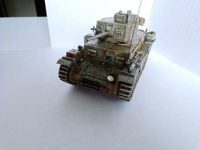 С покраской все сложнее: Сколы слишком светлые, танк весь ободран металл быстро окисляется, да и свежие сколы должны быть темнее это не самолет, подошел бы черный, темно коричневый, или красноватый цвет немецкого грунта. Декали действительно как будто поплыли или порвались. Блеск убирается матовым лаком, и пигментом при запылении. Еще такой момент верхняя часть танка вся в потеках, а нижняя, просто закидана грязью, так быть не должно.