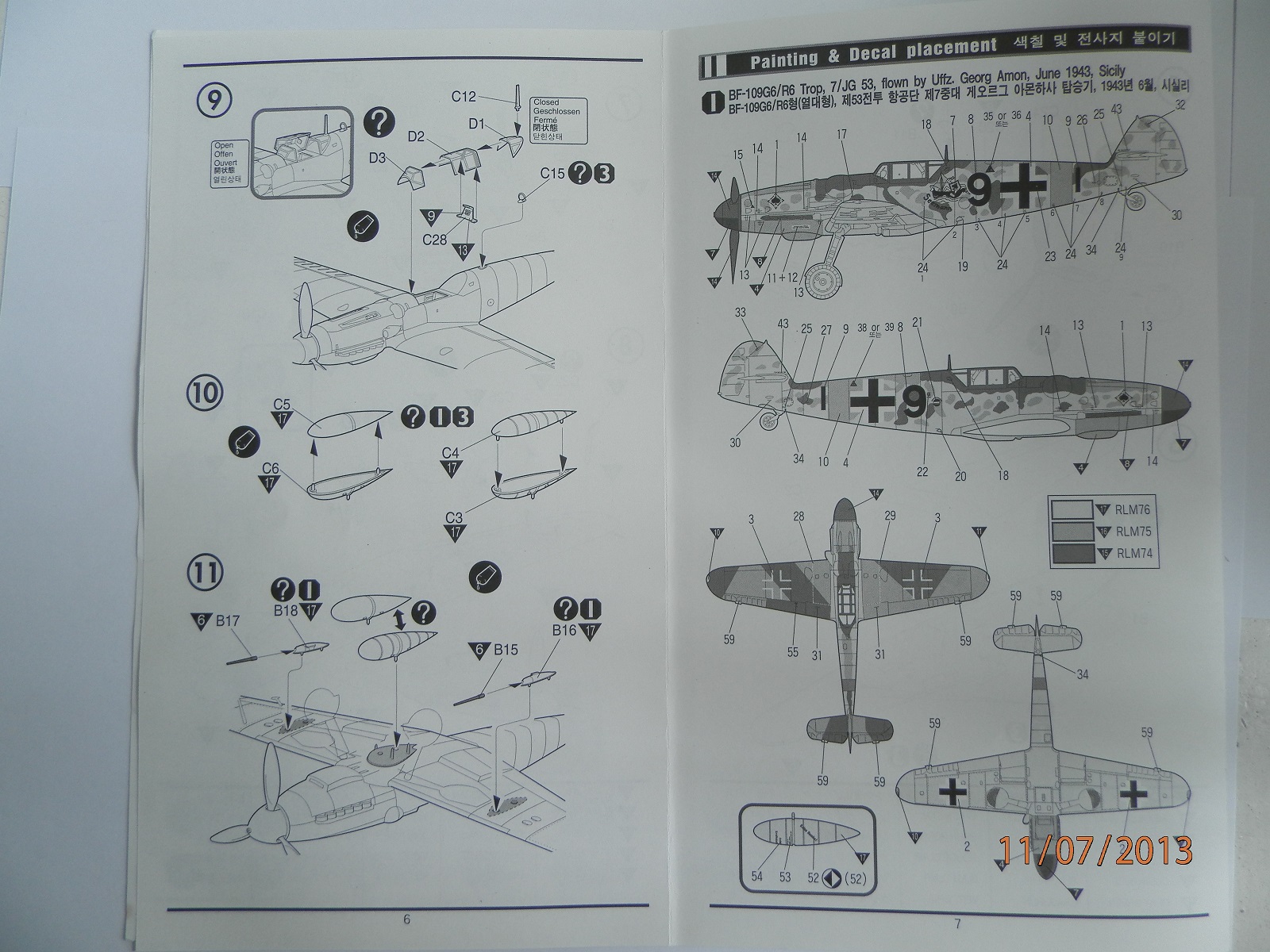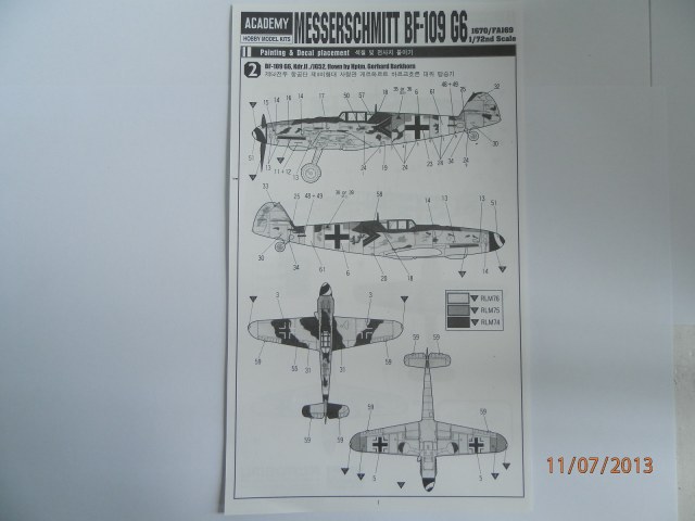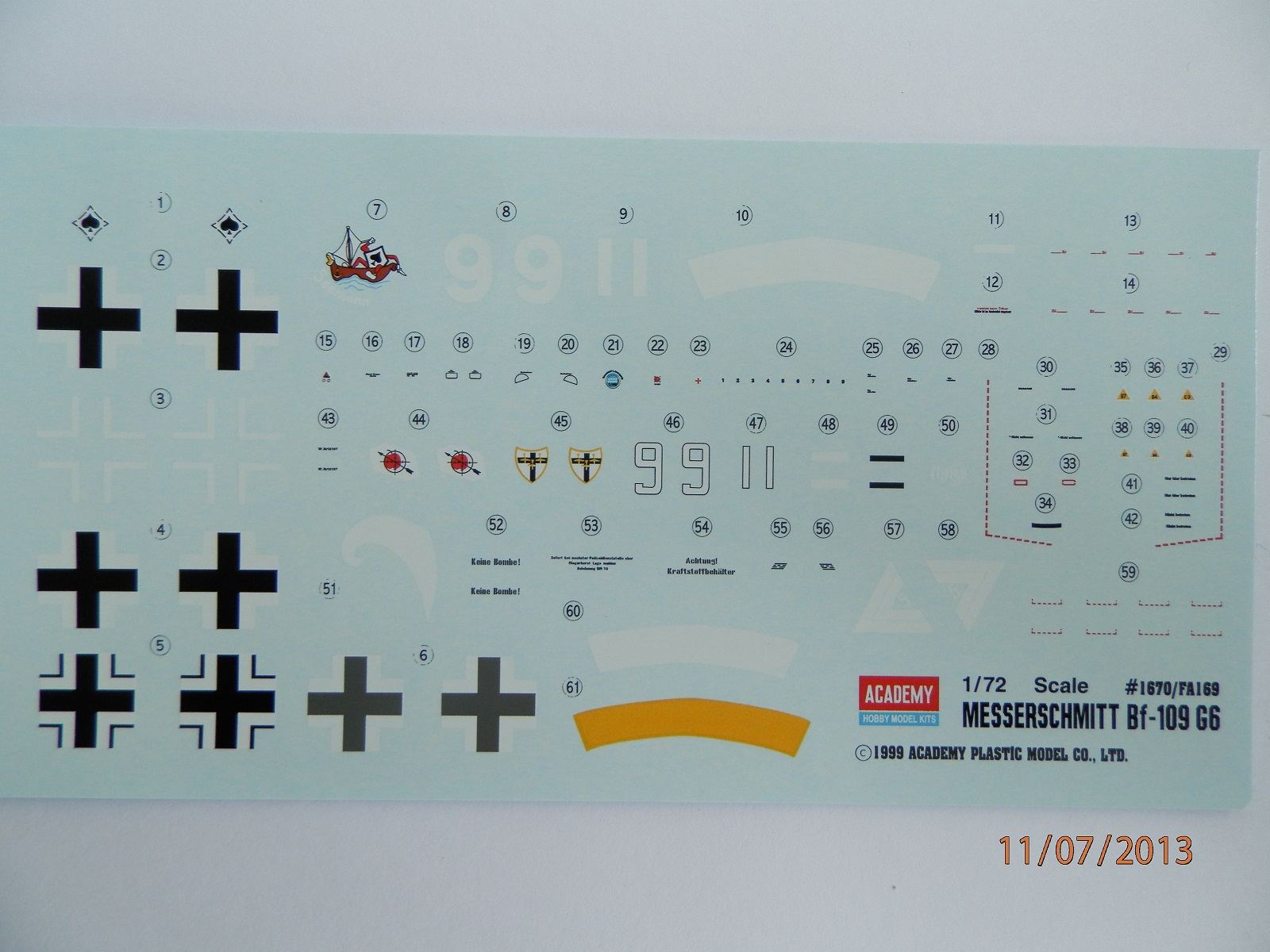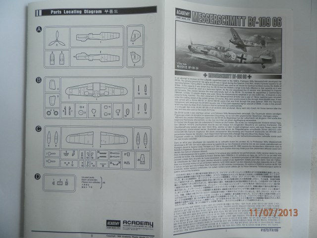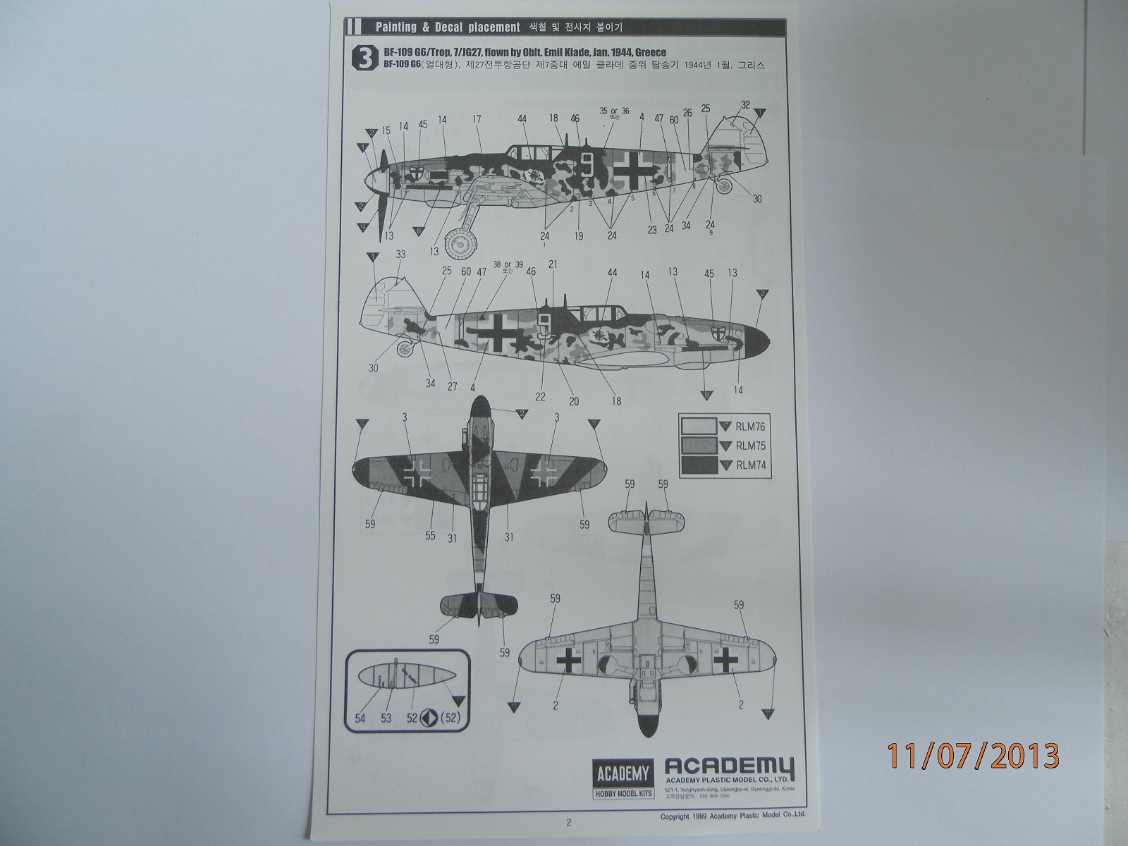 Доброго времени суток, Уважаемые Каропчане! Предлагаю Вашему вниманию модель германского истребителя Bf 109G-6 от корейского производителя Academy. Модель упакована в коробку из тонкого картона с изображением Bf 109 в одном из вариантов окраски. В коробке находится 3 литника светло- серого цвета и 1-прозрачный. Облоя, утяжин , недоливов не заметил. Внутрянка скудная . О копийности не знаю-в чертежи не влаживал( кстати кто знает где скачать - поделитесь. Скачал 4 книги - только схемы , фото и тд. А чертежей не нашел :( ) Деколь на 3 варианта окраски и много тех.надписей. Как бы все . О стыкуемости напишу позже-после сборки. Спасибо за внимание!