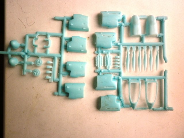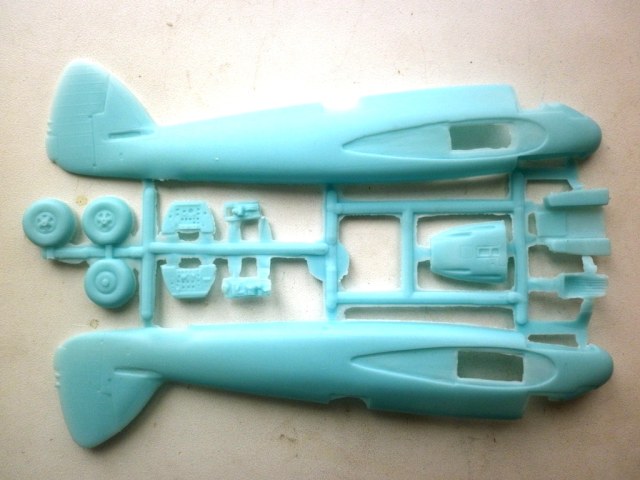 Пластик- типичный голубой . С очень чётким тонким кроем. Что радует - имеется два комплекта моторов , отличающихся выхлопными патрубками. То есть эта модель вполне может стать донором деталей для изготовления и "двоечки"