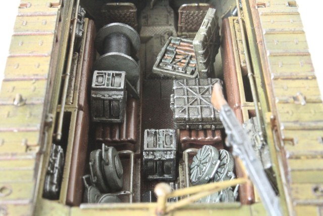 хорошая работа,аккуратная.Не понравилось что все содержимое стального цвета ...патронные и гранатные ящики,мины,катушка с кабелем.