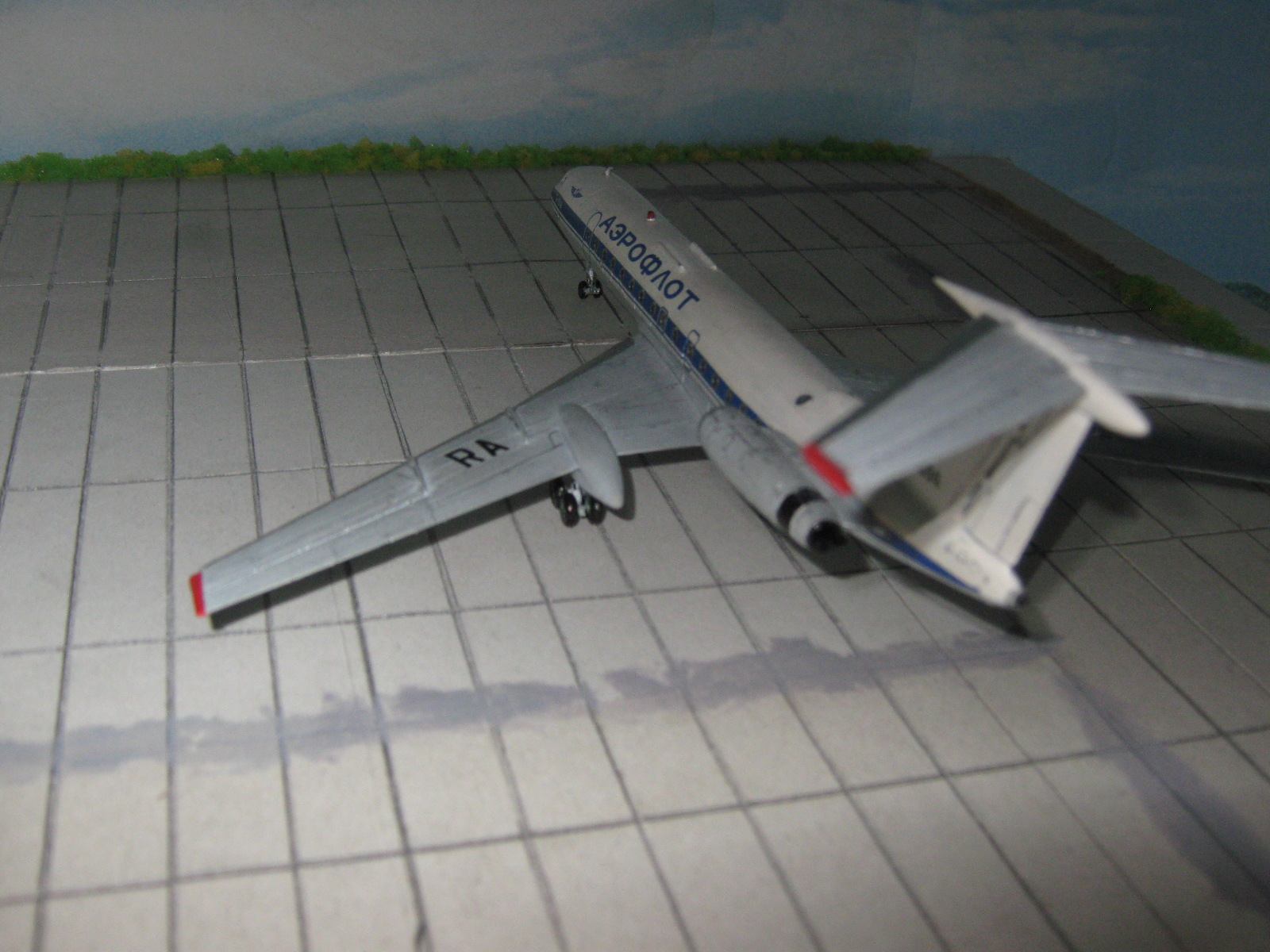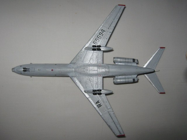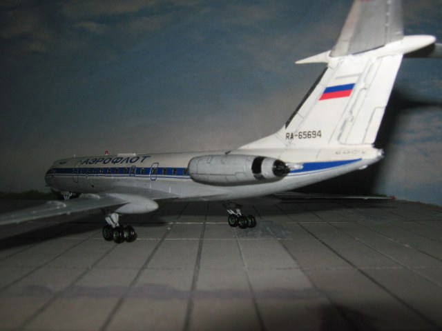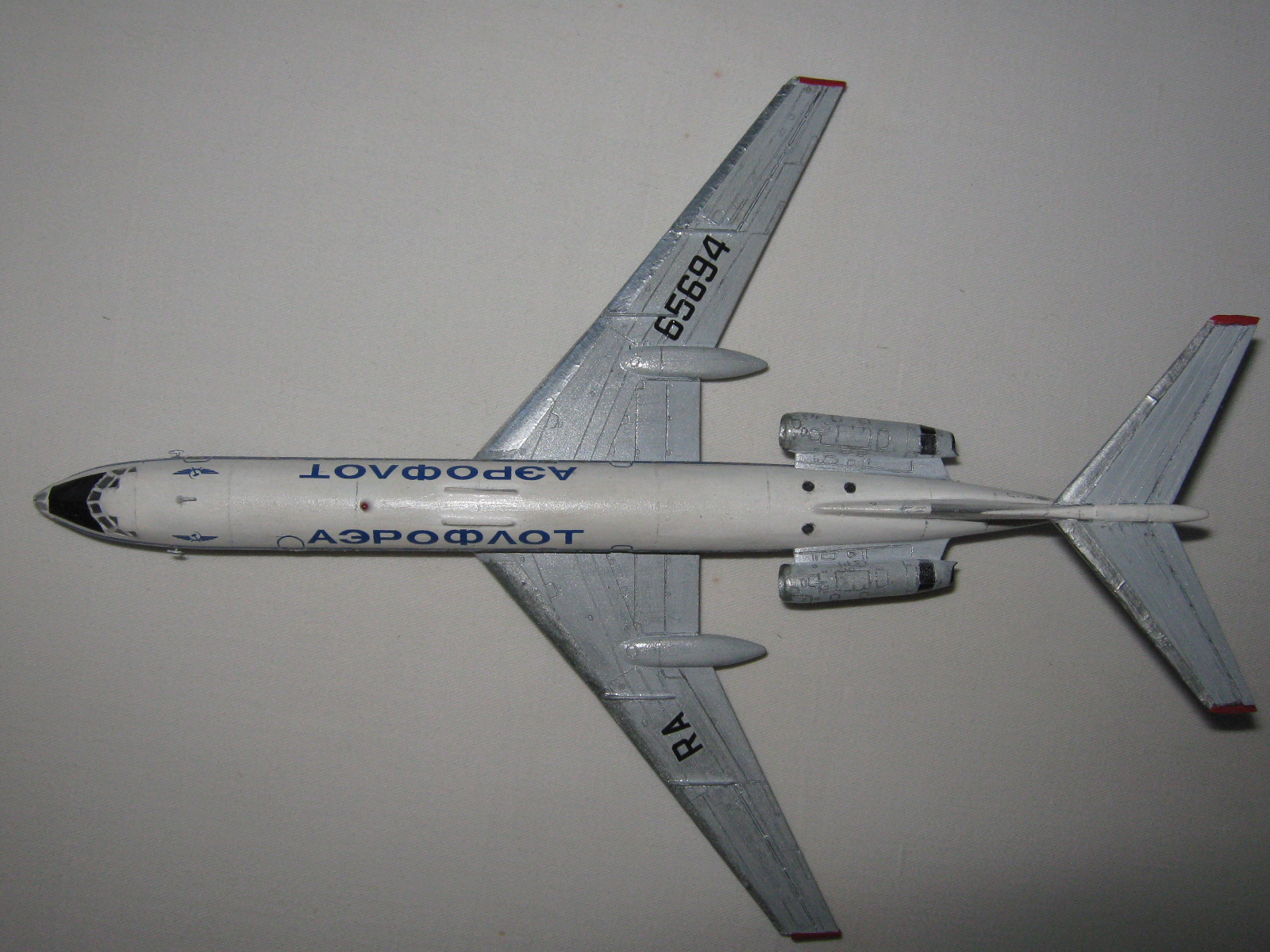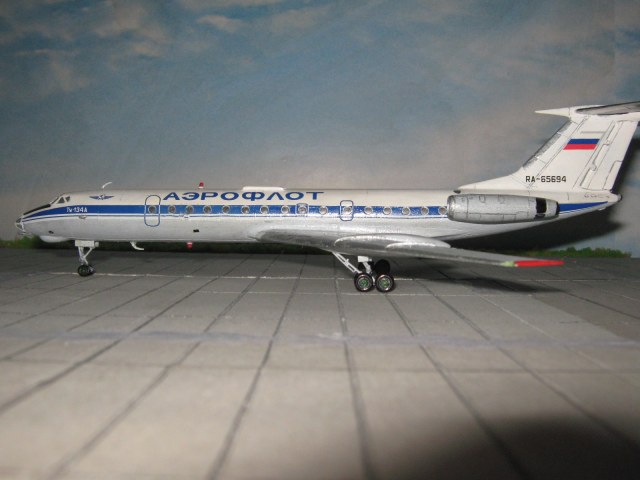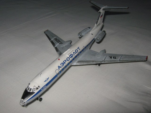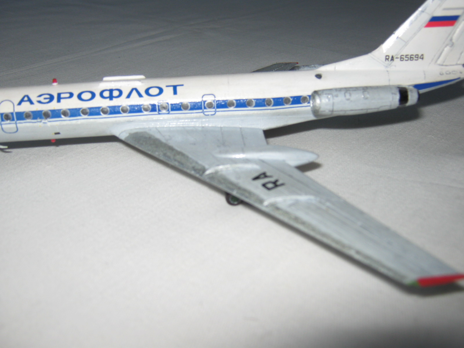 Привет всем уважаемые коллеги, вот выставляю не совсем удачный экземпляр ту-134А, модель полностью красилась кистью, акриловой краской, белый цвет с оттенком, на фото может не заметно, стройка велась две недели, приходилось исправлять покрасочную работу, в целом набор понравился, и в сборке, и дека не плохая, в процессе покрытия лаком по левому борту декаль поползла исправлять не стал, из доработок проблесковые маячки, левый предкрылок окрашен краской"алюминевая пудра с олифой", правый фольга, так оставил до будущих времен, просто запал пока к нему отсутствует, смотрите, оценивайте...