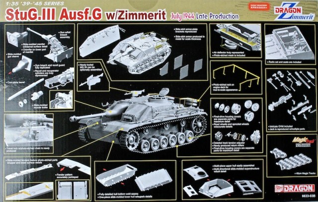 Вообще-то, в ближайшем будущем, у меня не было планов на покупку этой модели. Но увидев цену, резко передумал. 1800 рублей. Очень не большая сумма, для набора с такой комплектацией. Как обычно, огромное количество деталей. Две платы фототравления. Металлический трос. Наборные траки Magic Track. Металлические навесные экраны. Четыре варианта окраса. На мой взгляд, очень достойный набор.